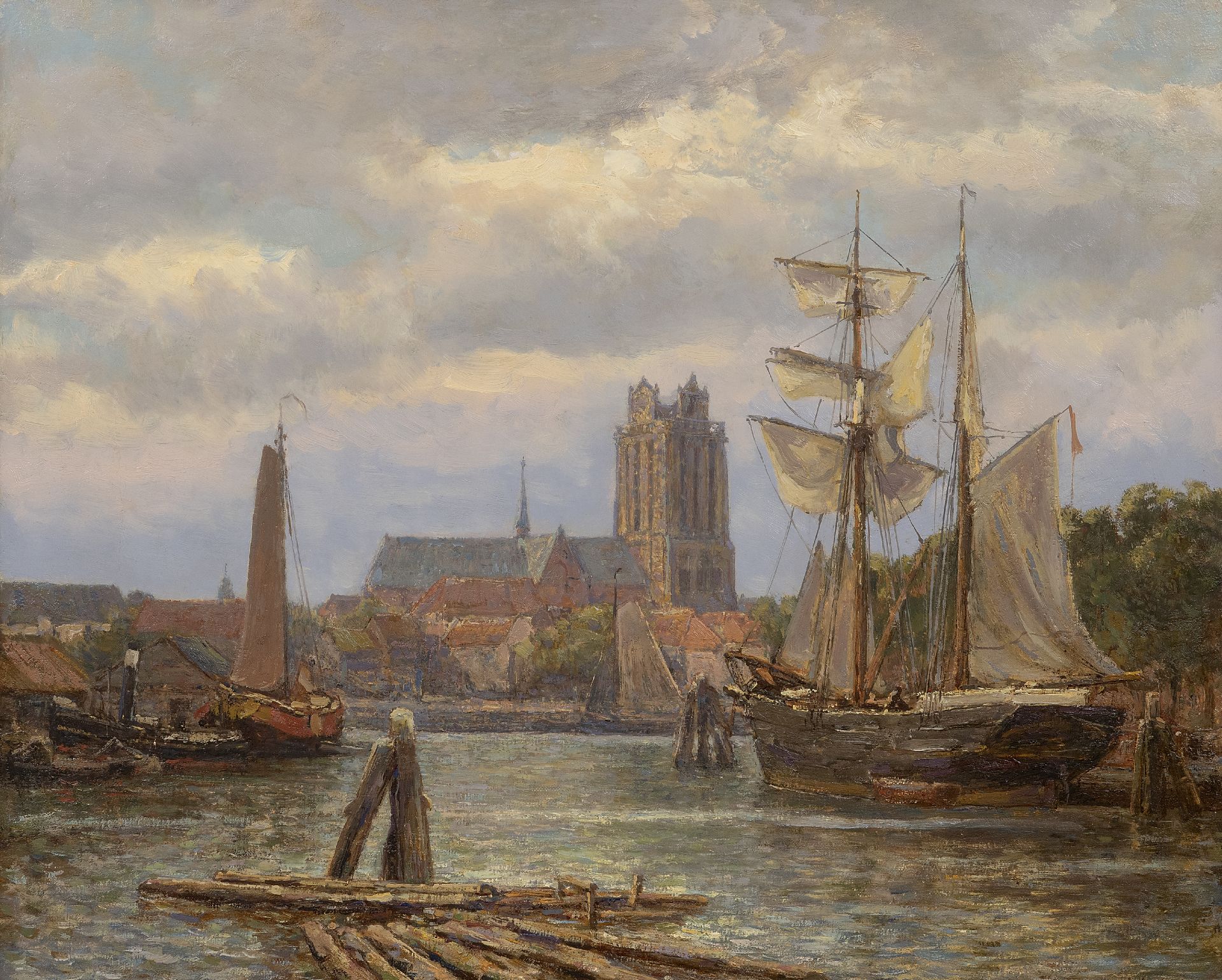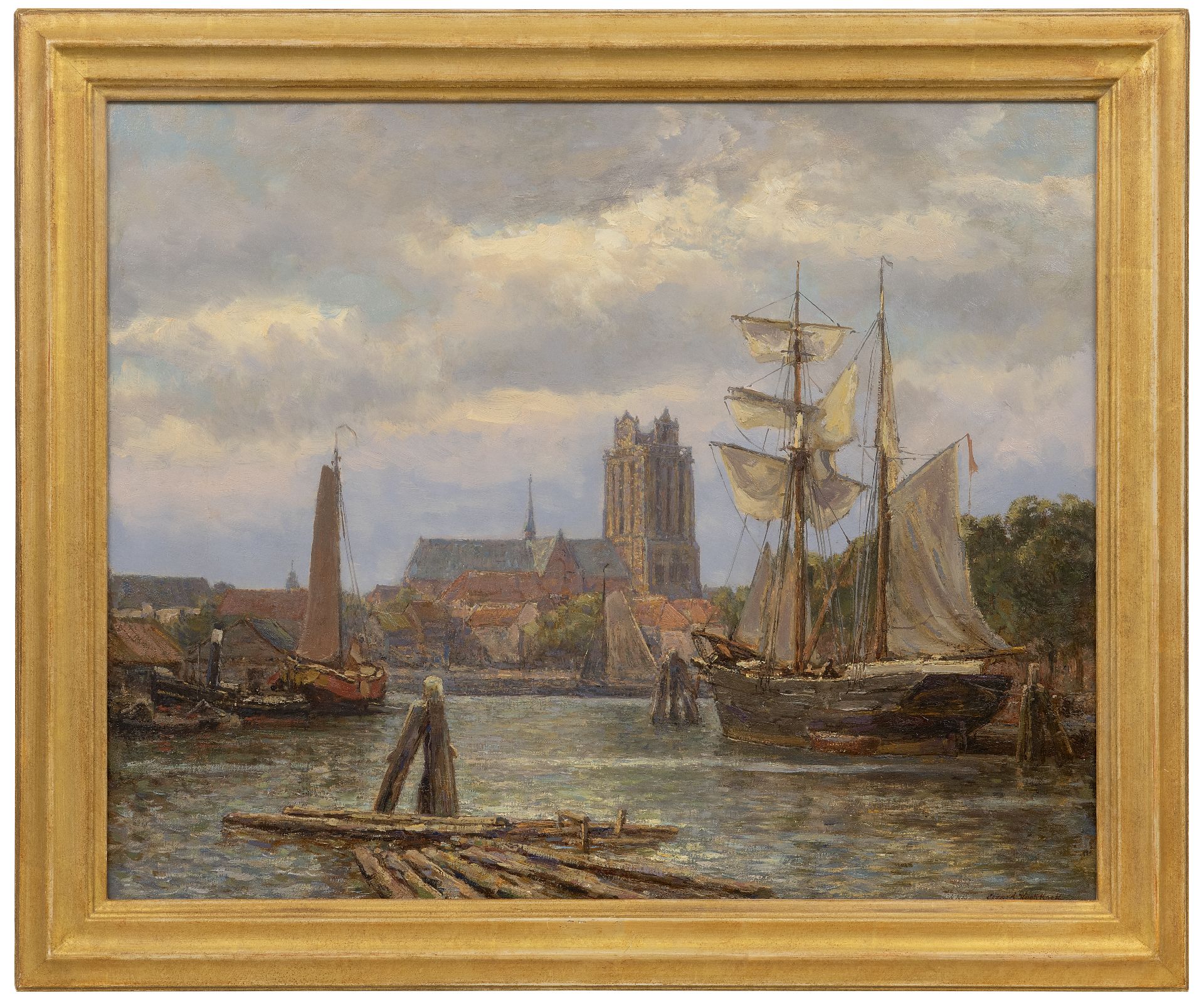Gerard Koekkoek kunstwerk • schilderij • voorheen te koop Gezicht op Dordrecht vanaf het water