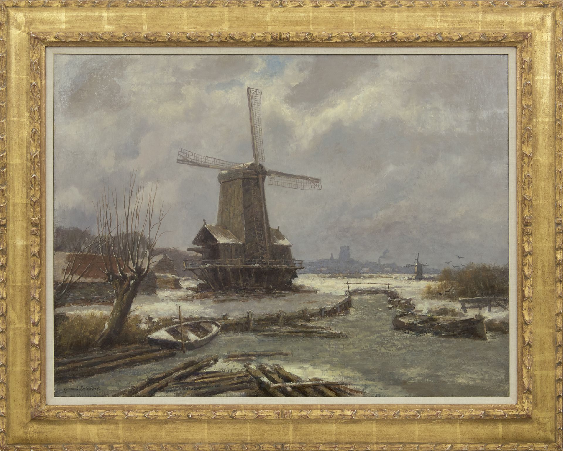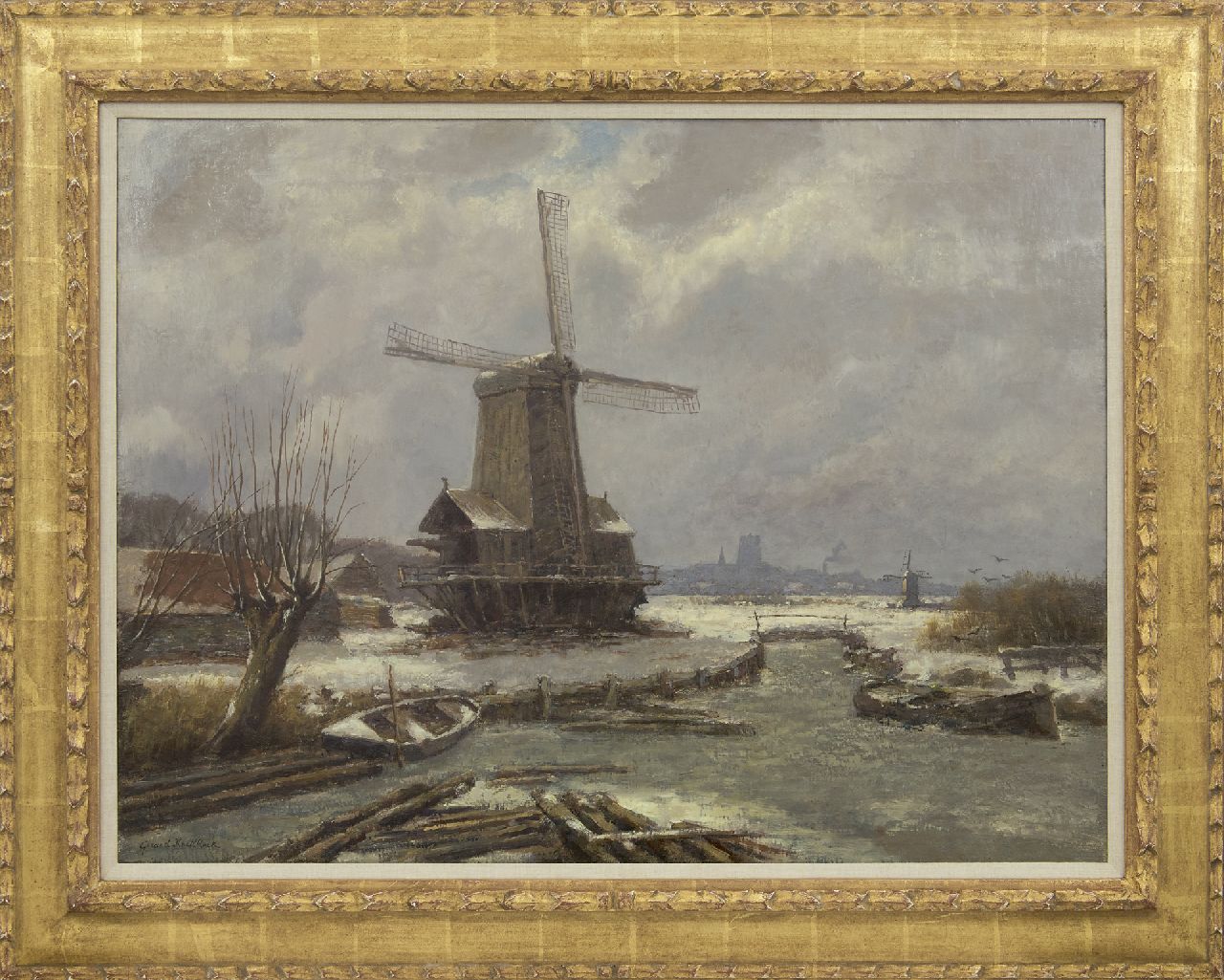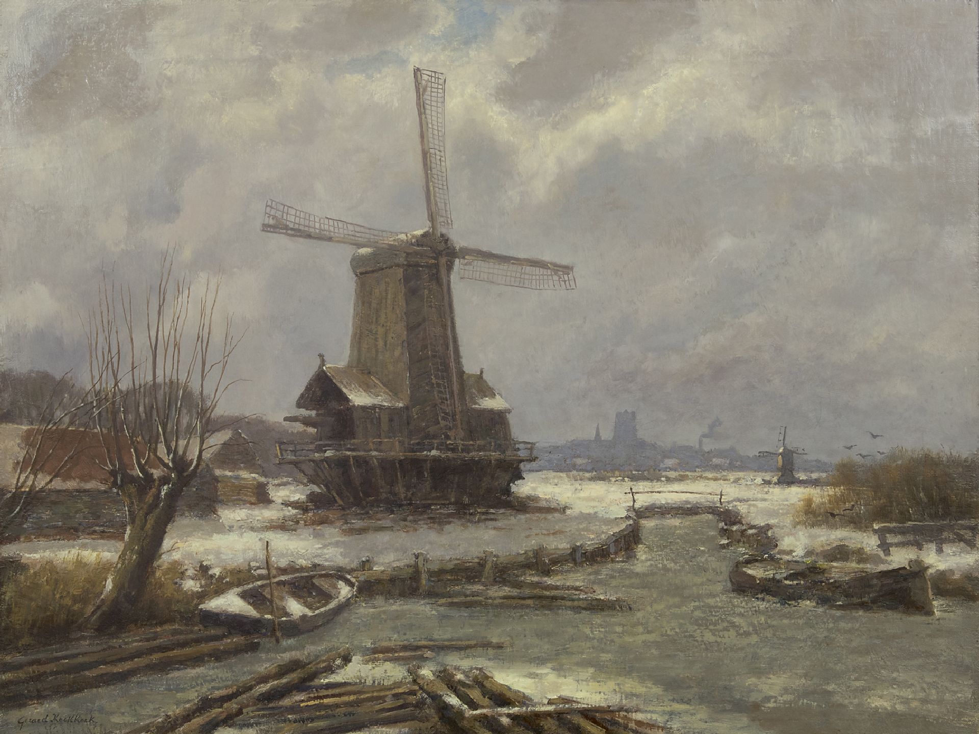 Gerard Koekkoek kunstwerk • schilderij • te koop Sneeuwlandschap met houtzaagmolen