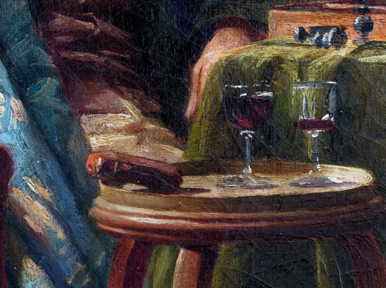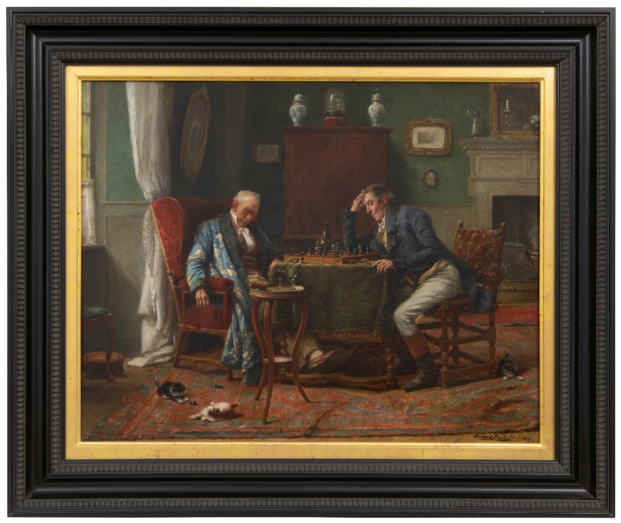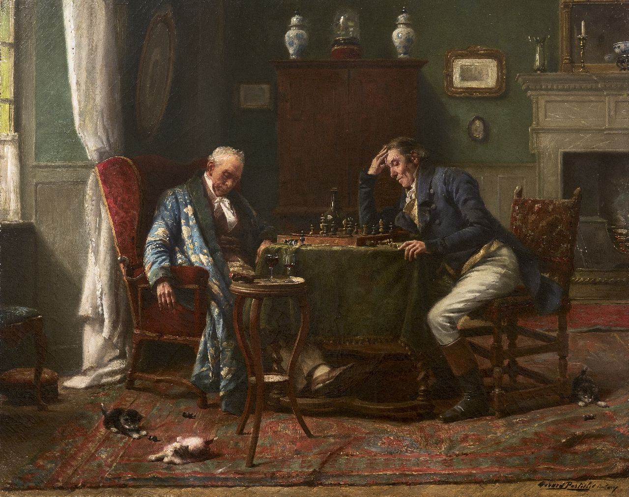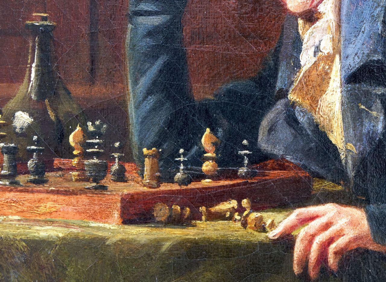 Gerard Portielje kunstwerk • schilderij • te koop Bij het schaakspel is het wakker blijven