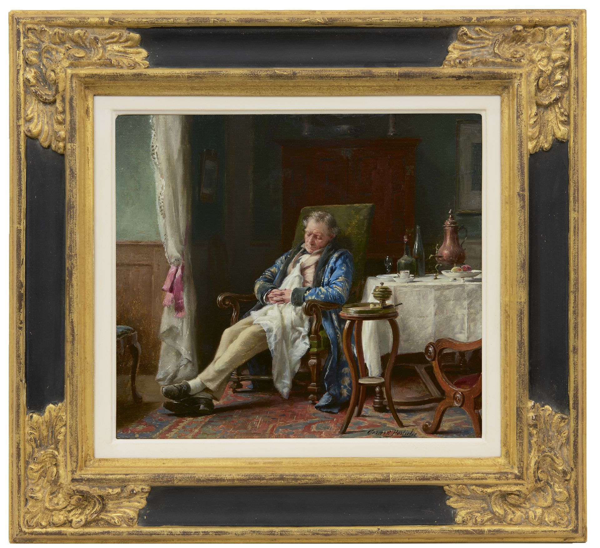 Gerard Portielje kunstwerk • schilderij • te koop Een dutje na de maaltijd