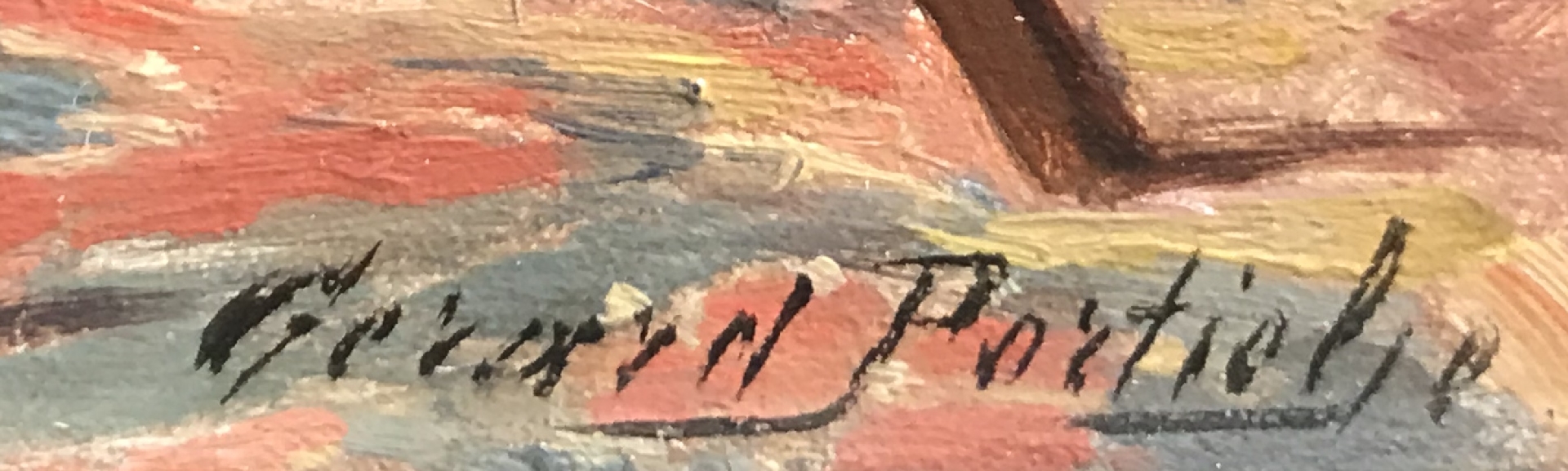 annotatie met verso authenticiteitsverklaring van de schilder voorzien van zijn zegel: 'The undersigned déclares that this picture has been painted by himself to the order of Mrs Fred Loeser a Co of Brooklyn N.Y., Gerard Portielje Antwerp'.
