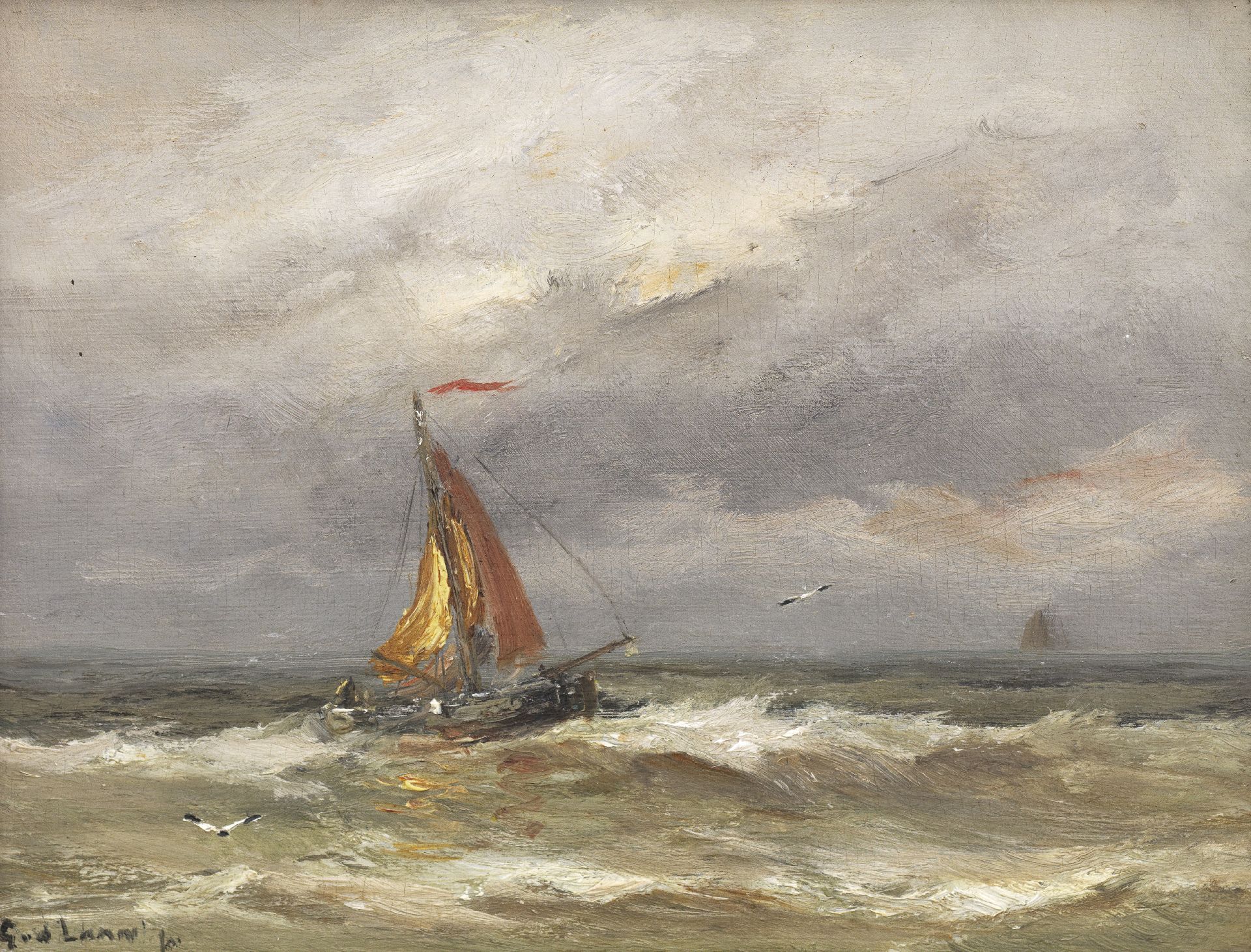 De in Friesland geboren kunstenaar Gerard van der Laan schilderde en aquarelleerde voornamelijk strand- en zeegezichten. Hij vond hiervoor ongetwijfeld inspiratie aan het strand van Scheveningen dicht bij Den Haag, waar hij vanaf 1880 woonde en werkte. Van der Laan verhuisde naar de hofstad vanuit Leeuwarden, waar hij drie jaar had doorgebracht. Hoewel hij naam maakte als marineschilder heeft Van der Laan ook enkele (winter)landschappen geschilderd. Hij was lid van kunstenaarssociëteit Pulchri Studio en nam deel aan tentoonstellingen in Groningen, Amsterdam, Rotterdam en Den Haag.