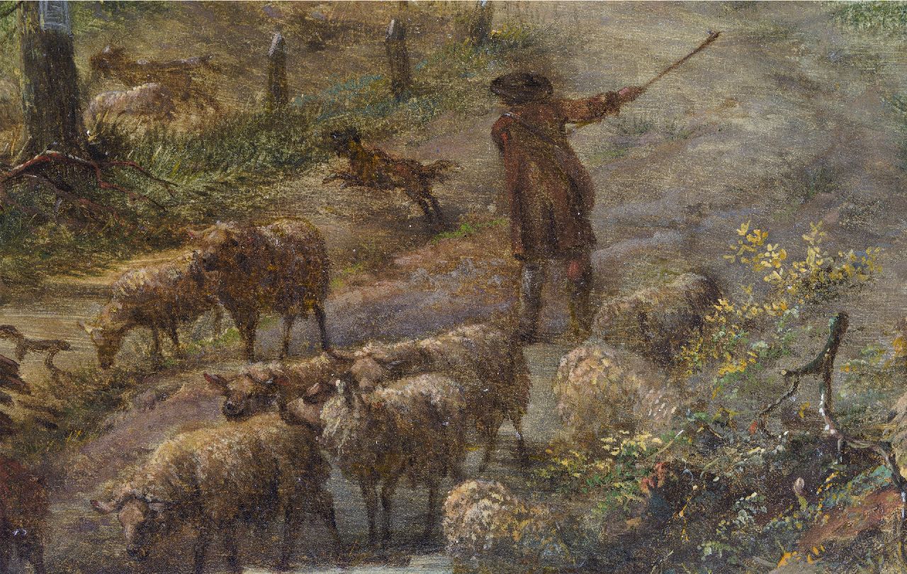Gerard van Nijmegen kunstwerk • schilderij • te koop Herder met schapen bij een beek