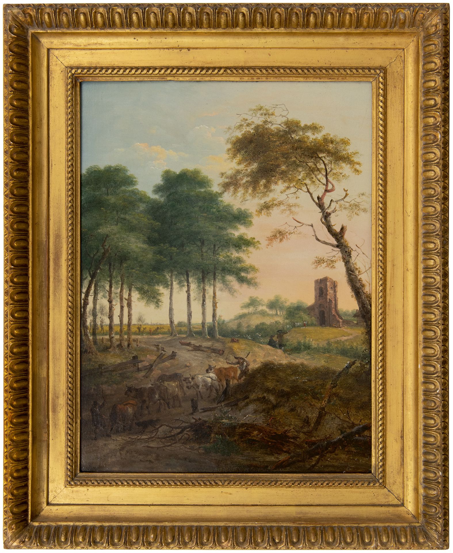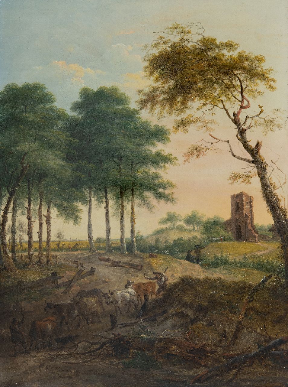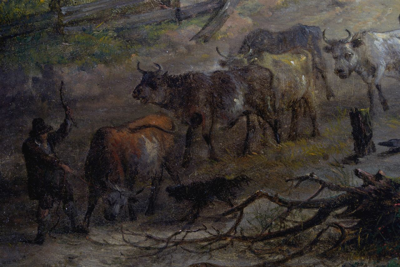 Gerard van Nijmegen kunstwerk • schilderij • te koop Koeherders met vee bij een rivierbedding