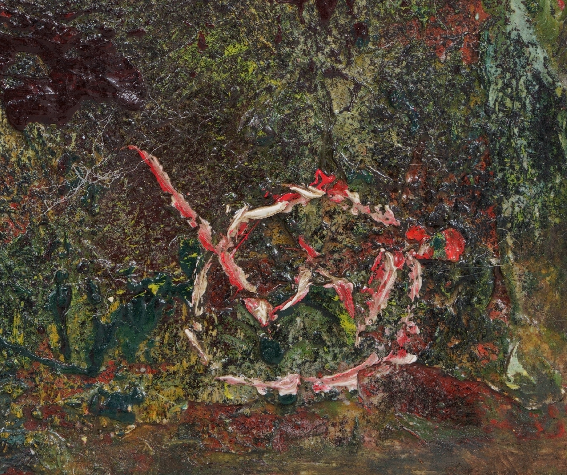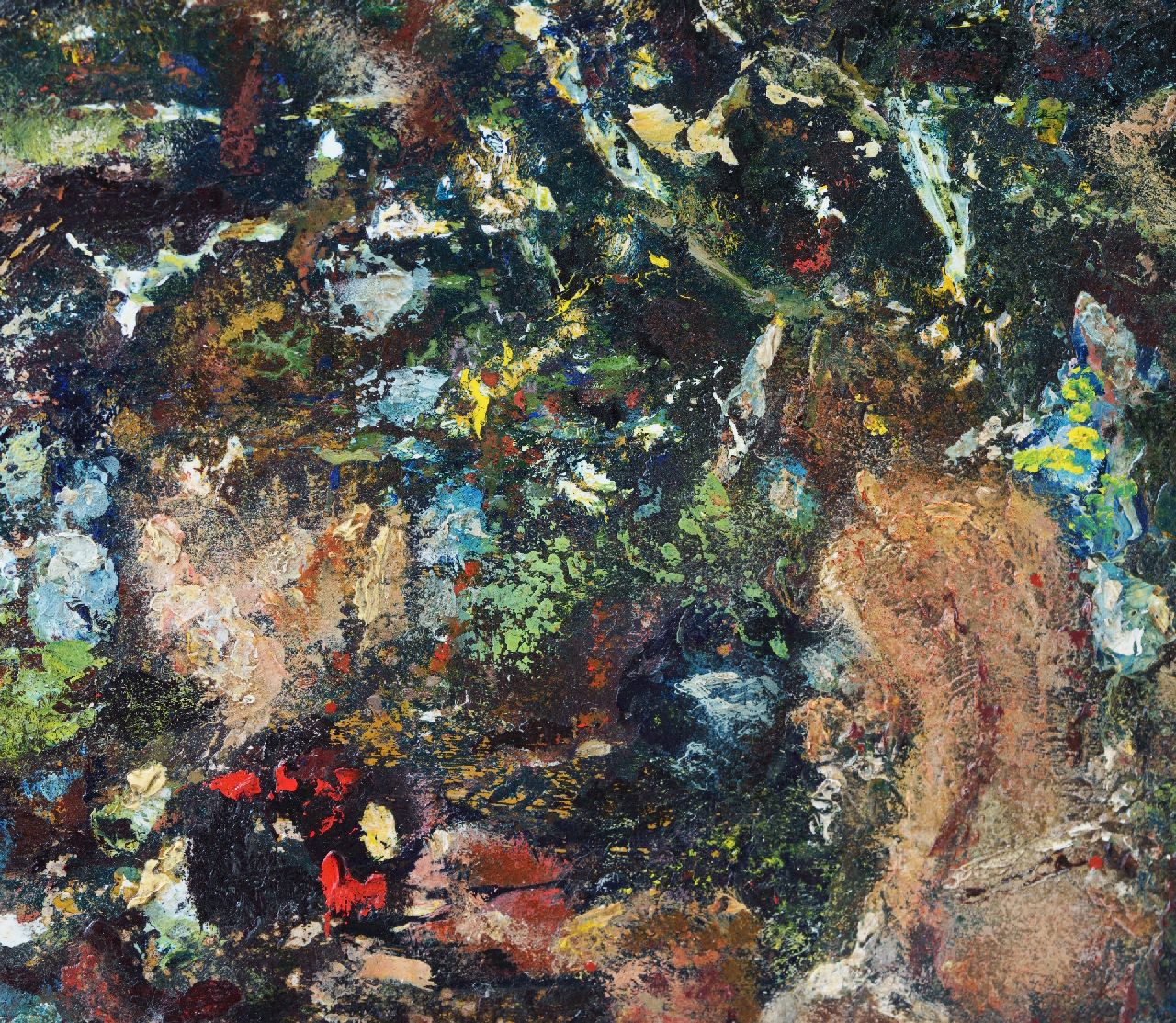 olieverf op paneel 25,4 x 51,6 cm, gesigneerd rechtsonder met monogram en verso gedateerd 1950