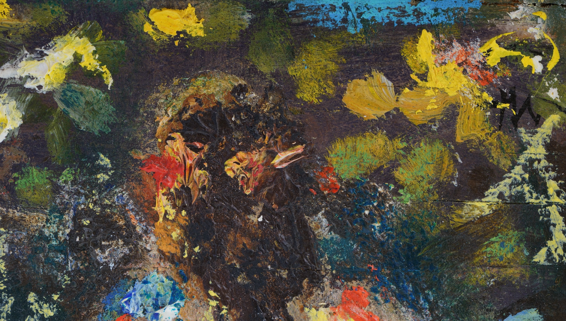 olieverf op paneel 16,8 x 12,5 cm, gesigneerd rechtsboven met initialen en verso gedateerd 31 juli '68