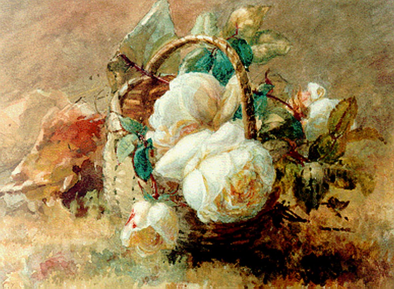 Gerardine van de Sande Bakhuyzen kunstwerk • aquarel • tekening • voorheen te koop Mandje met rozen