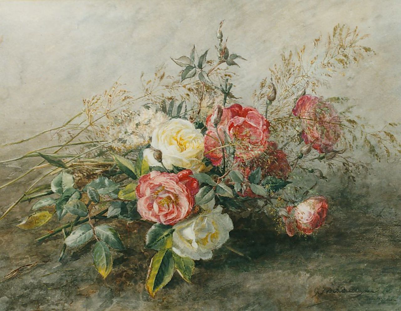 Gerardine van de Sande Bakhuyzen kunstwerk • aquarel • tekening • voorheen te koop Stilleven van rozen