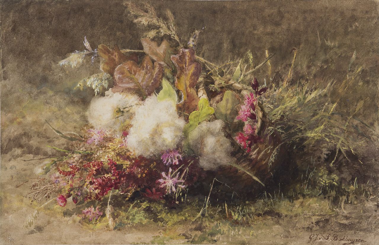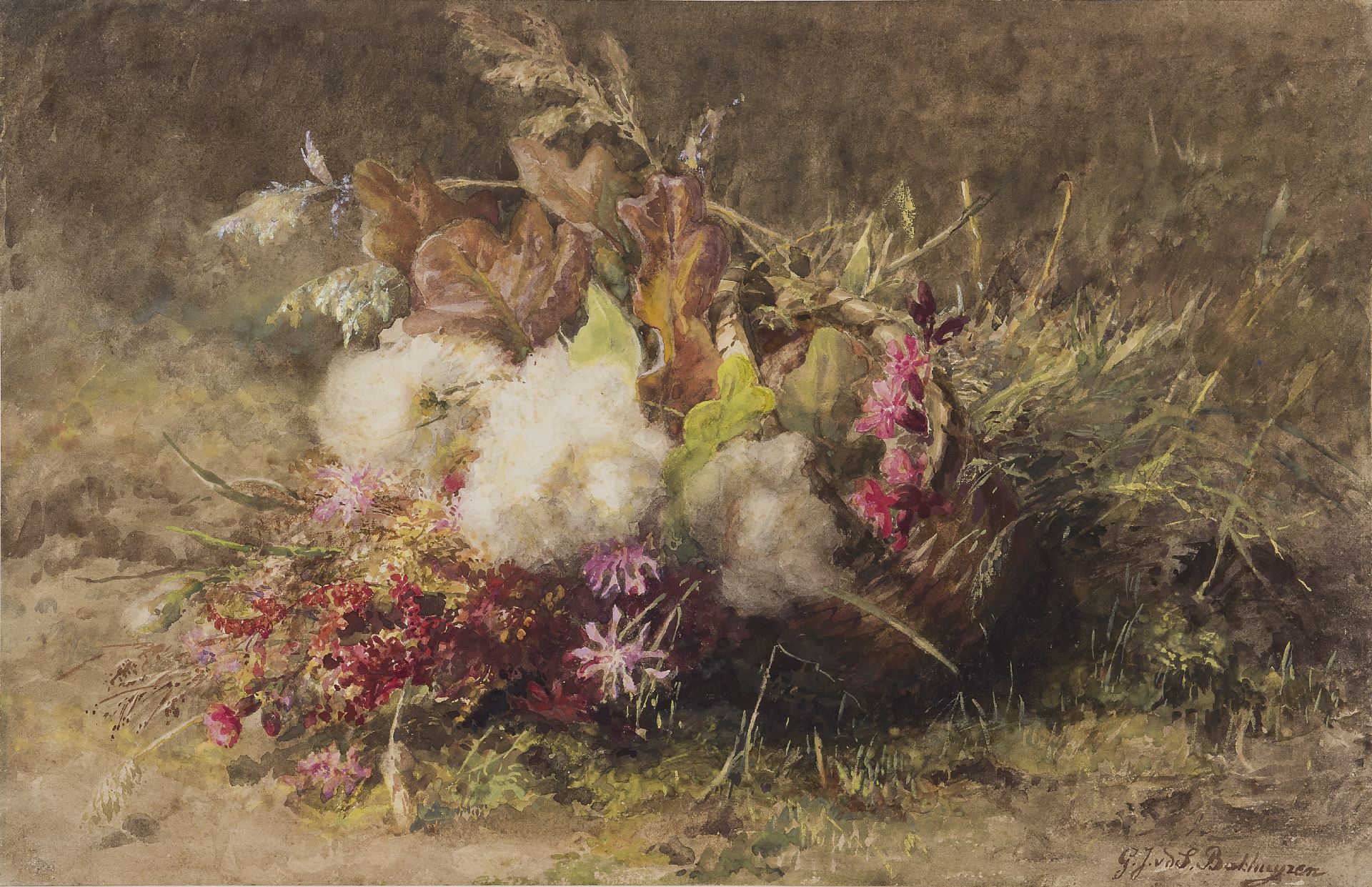 De traditie van het Hollandse 17e-eeuwse bloemstilleven werd door Gerardine van de Sande Bakhuyzen in de 19e eeuw op geheel eigen wijze voortgezet. Onder invloed van de School van Barbizon en de Franse impressionisten staat bij haar niet meer de symboliek van de bloemen centraal, maar hun specifieke karakter en de sfeer die ze uitstralen. Kenmerkend zijn haar composities van bloemen en vruchten met decoratieve bladsoorten en takken die zij niet schikt, maar schijnbaar achteloos op de bosgrond neerlegt.