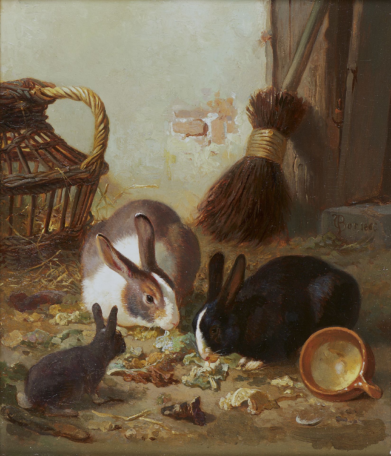 Gerardus Johannes Bos kunstwerk • schilderij • voorheen te koop Konijnen aan de maaltijd
