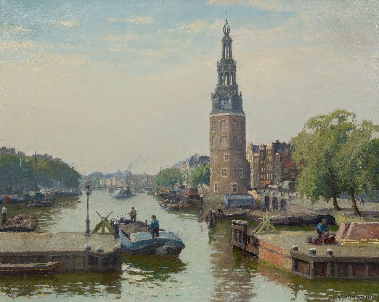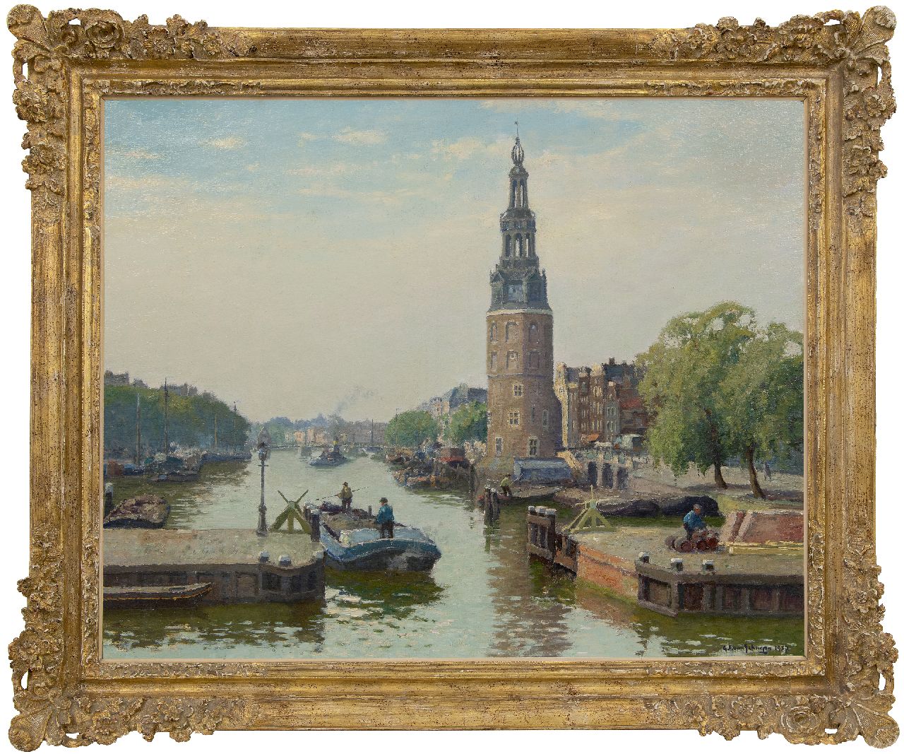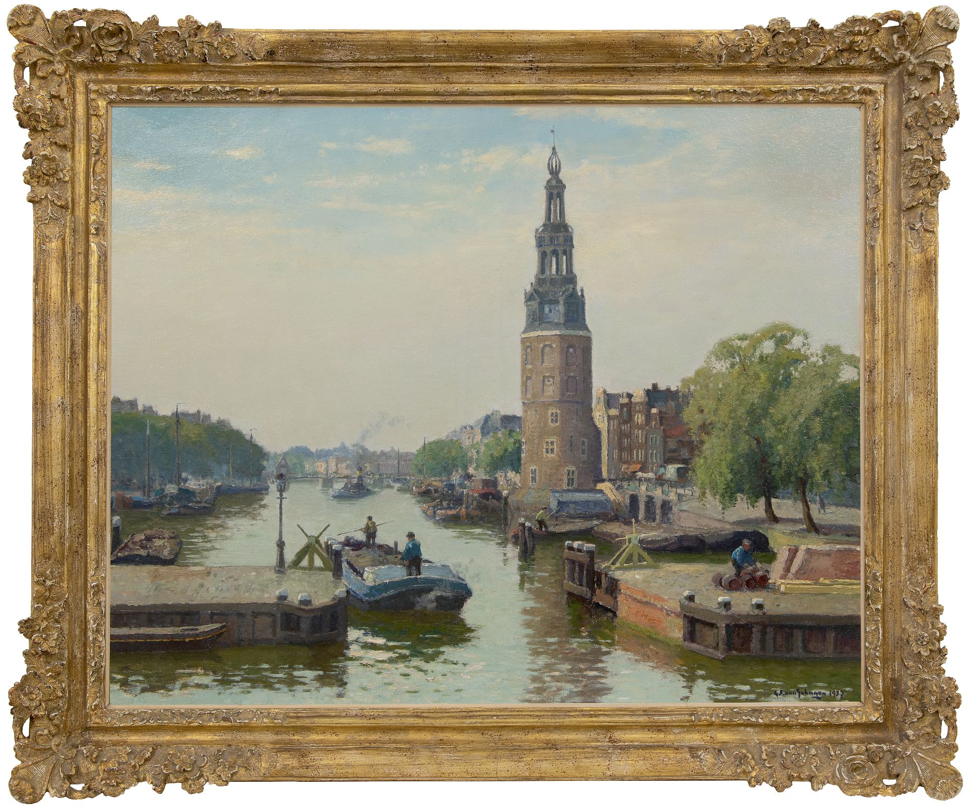 Gerbrand Frederik van Schagen kunstwerk • schilderij • te koop Gezicht op de Montelbaanstoren, Amsterdam