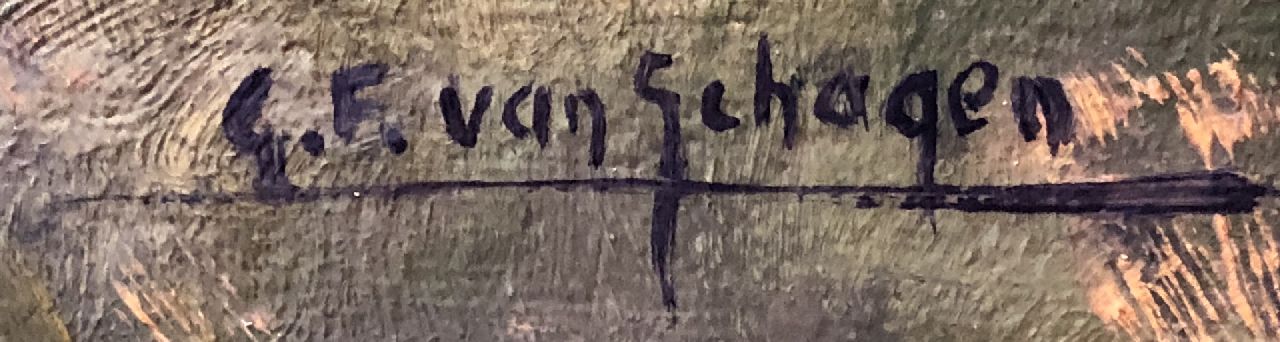 Gerbrand Frederik van Schagen was bij uitstek een schilder van het Hollandse landschap en de stad. Zijn onderwerpen vond hij niet alleen in de omgeving van zijn woonplaatsen Den Haag en Laren, maar hij doorkruiste er het hele land voor. Vooral werkte Van Schagen in Amsterdam, 't Gooi en Loosdrecht, in de verstilde dorpjes van Friesland en het glooiende landschap van Zuid-Limburg. Zijn doel was het vastleggen van het karakter en de stemming van een plek zoals die zich op een bepaald moment van de dag aan hem voordeden. Een typische impressionist dus.