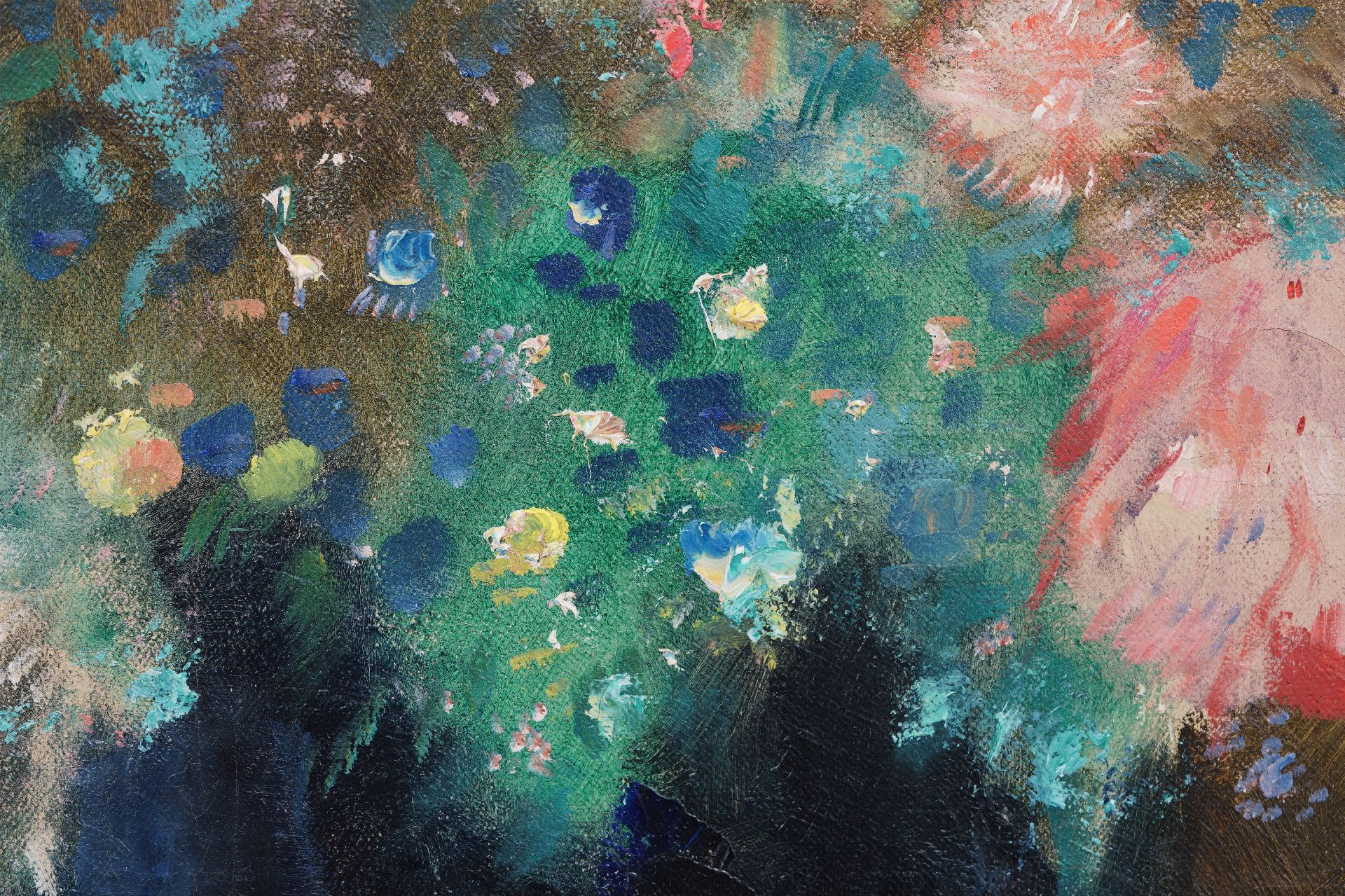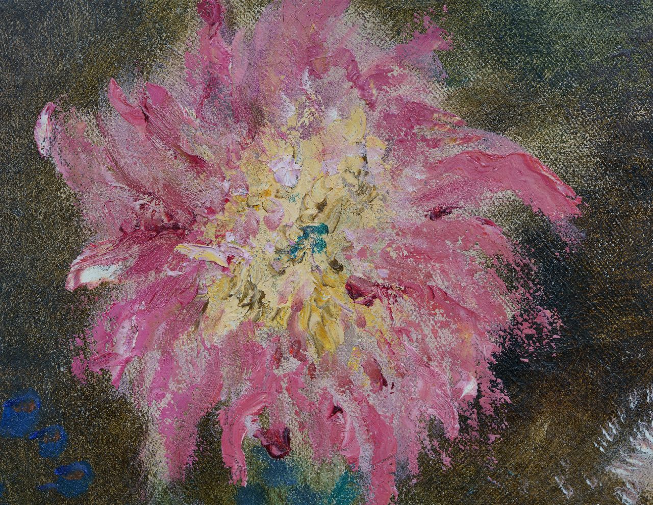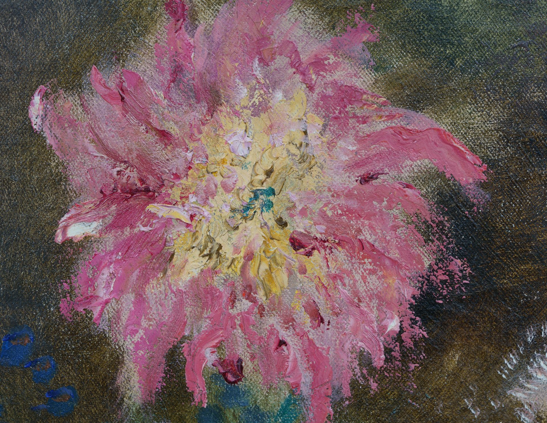 Germ de Jong kunstwerk • schilderij • voorheen te koop Dahlia's in blauwe vaas