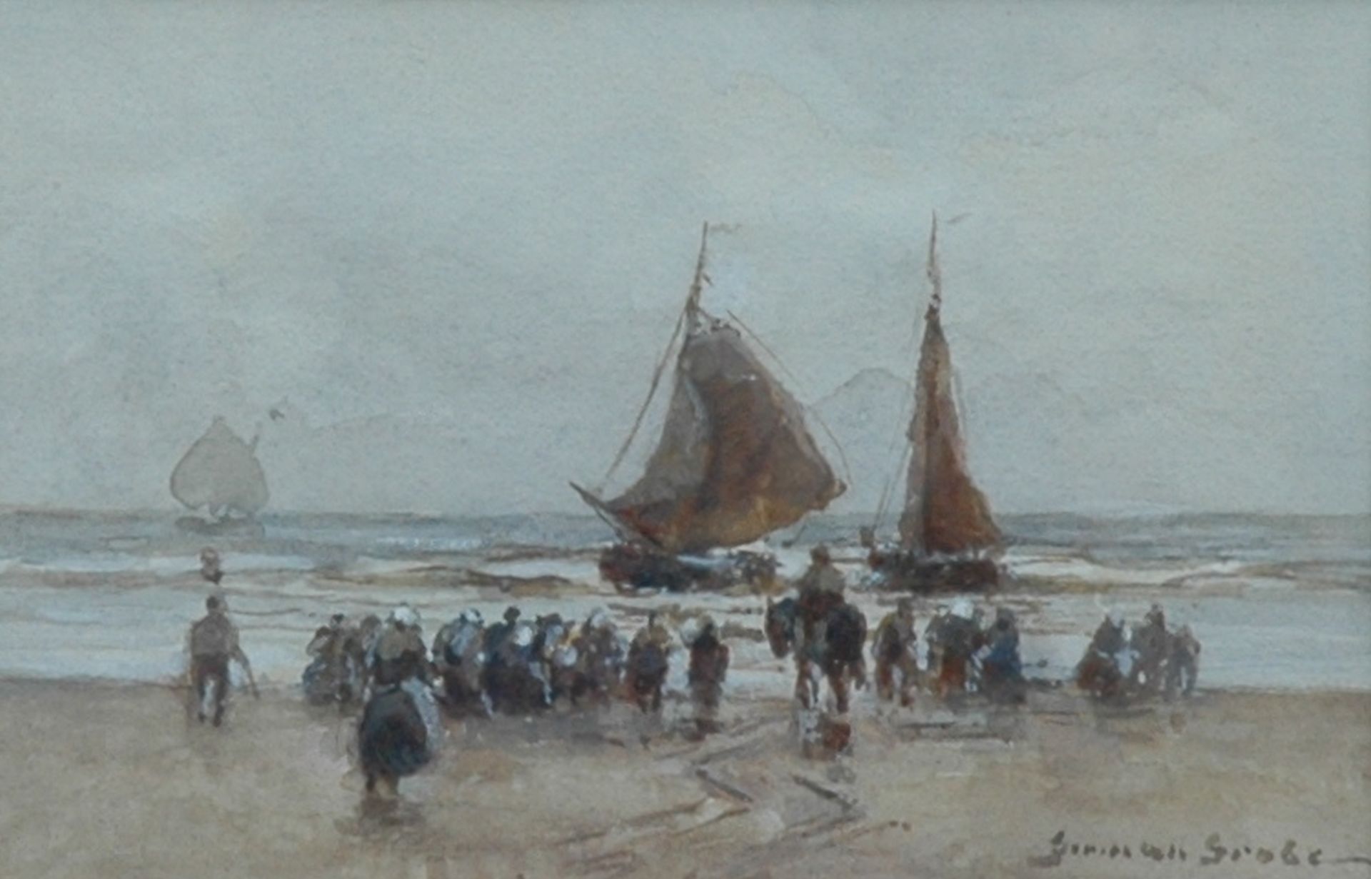 De Duitse schilder German Grobe was leerling van de Akademie in Düsseldorf en zou daarna deel uitmaken van de Düsseldorfse School van landschapschilders. Een van zijn leraren daar was de zeeschilder E.G. Ducker, die veel invloed had op zijn leerling. Vanaf 1887 bracht Grobe iedere zomer door in het Hollandse vissersdorp Katwijk, waar hij dorpsgezichten, strandscènes en het leven van het vissersvolk schilderde. Zijn impressionistische, vaak schetsmatige stijl en eenheid van toon verraden invloed van de schilders van de Haagse School, in het bijzonder van Mauve en Mesdag.