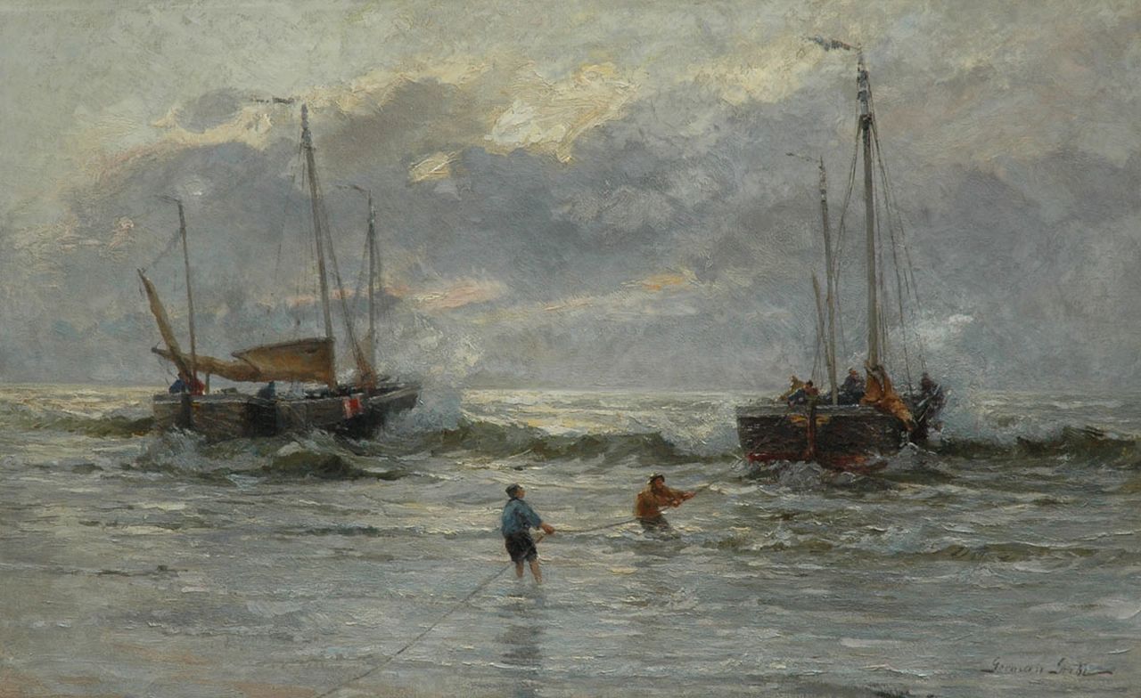 German Grobe kunstwerk • schilderij • voorheen te koop Binnenkomst van de vloot, Katwijk