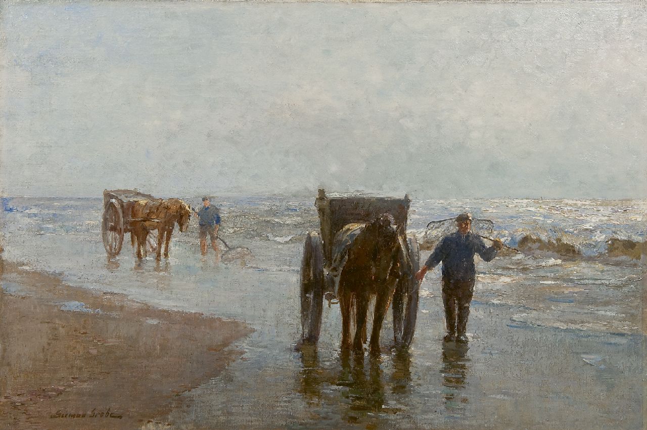 German Grobe kunstwerk • schilderij • voorheen te koop Garnalenvissers op het strand van Katwijk