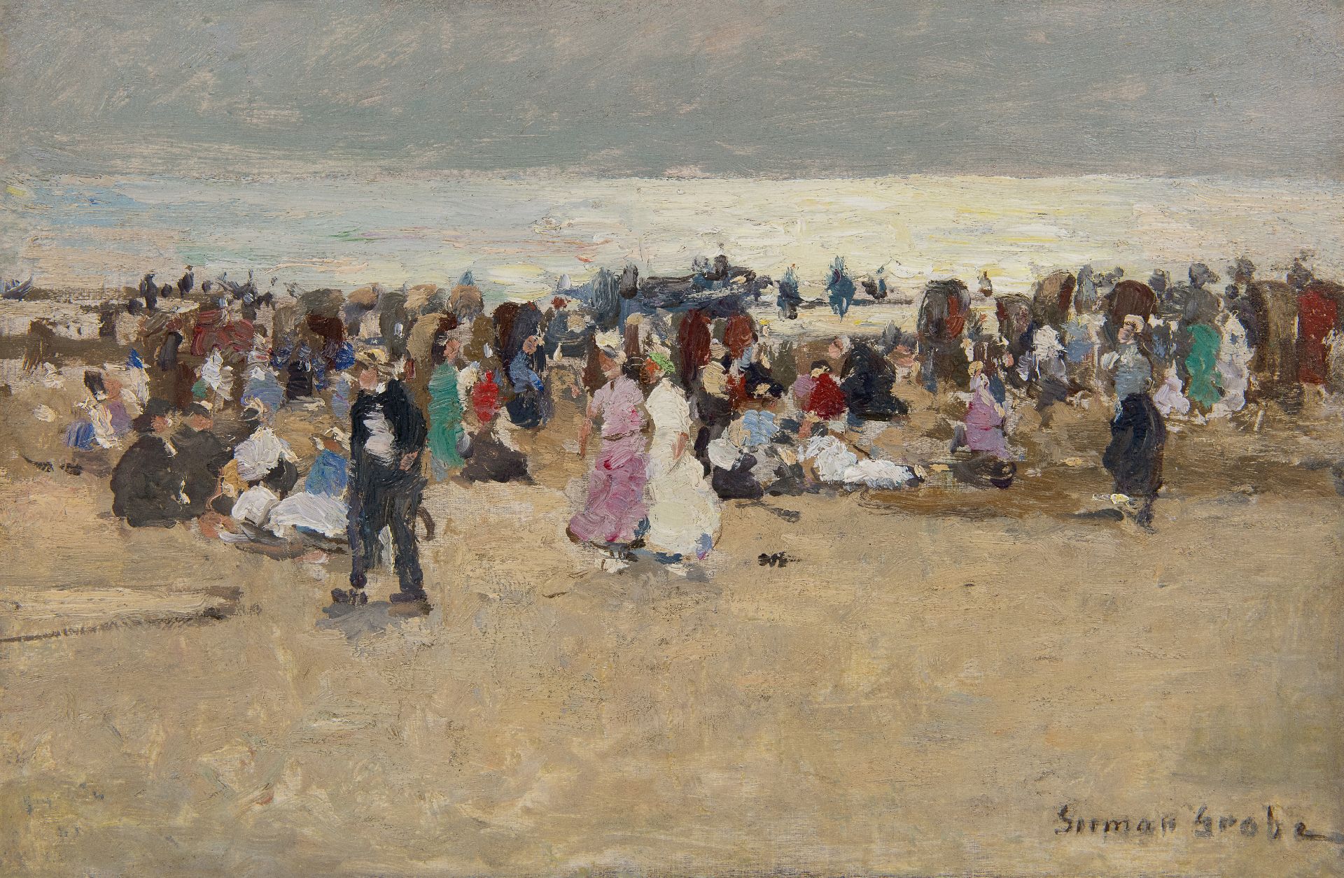 De Duitse schilder German Grobe was leerling van de Akademie in Düsseldorf en zou daarna deel uitmaken van de Düsseldorfse School van landschapschilders. Een van zijn leraren daar was de zeeschilder E.G. Ducker, die veel invloed had op zijn leerling. Vanaf 1887 bracht Grobe iedere zomer door in het Hollandse vissersdorp Katwijk, waar hij dorpsgezichten, strandscènes en het leven van het vissersvolk schilderde. Zijn impressionistische, vaak schetsmatige stijl en eenheid van toon verraden invloed van de schilders van de Haagse School, in het bijzonder van Mauve en Mesdag.