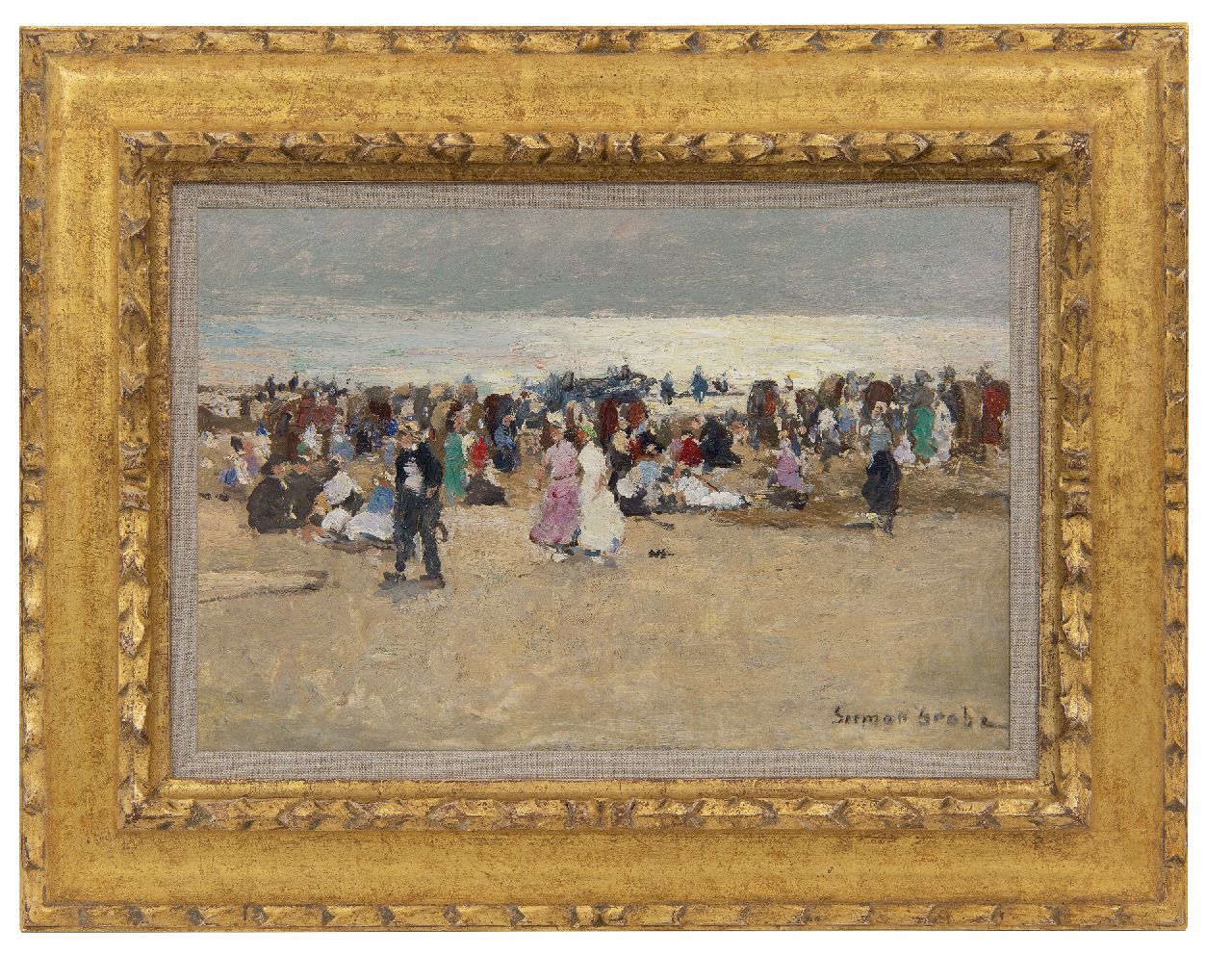 German Grobe kunstwerk • schilderij • voorheen te koop Kleurrijke drukte op het strand