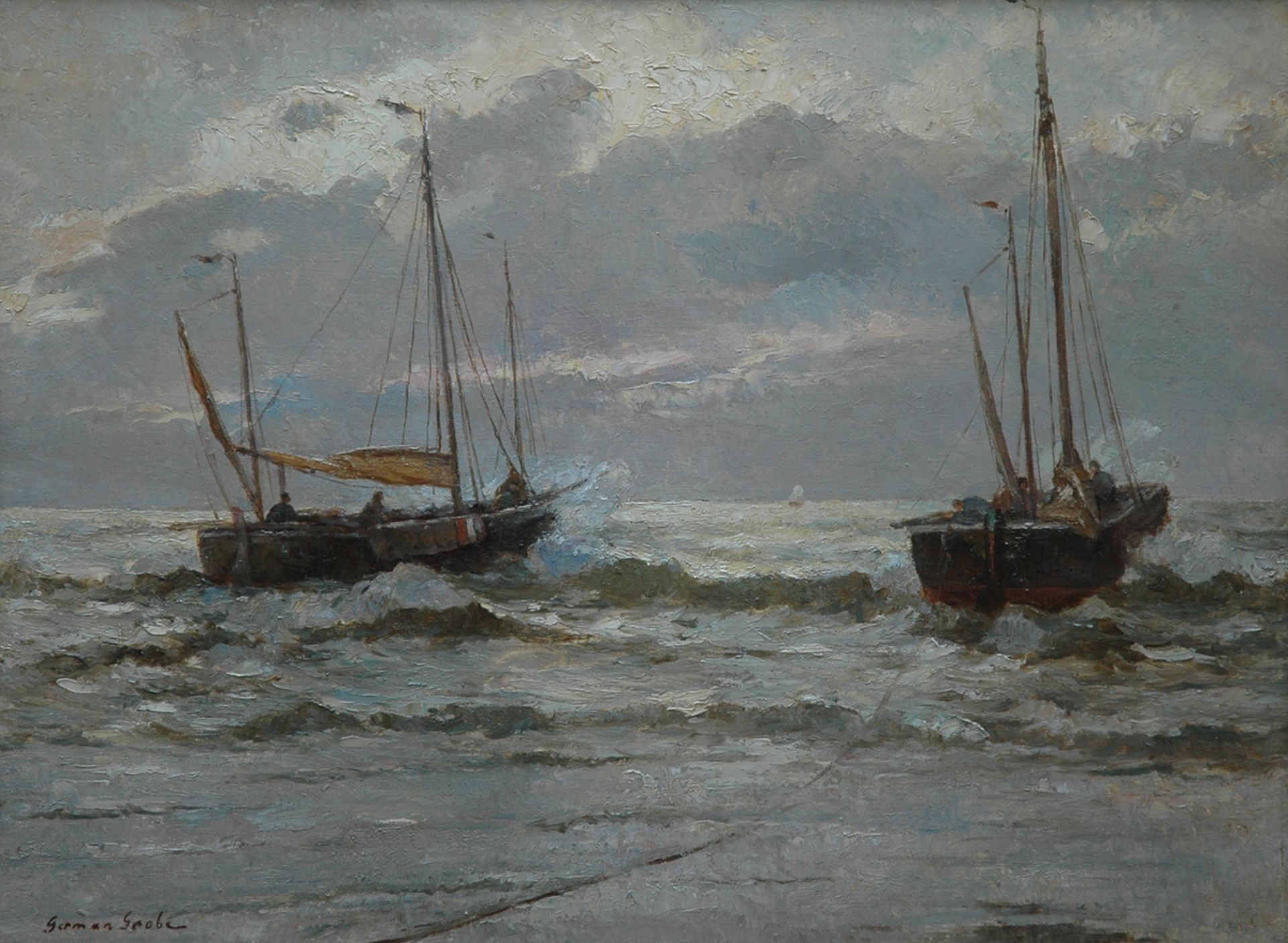 De Duitse schilder German Grobe was leerling van de Akademie in Düsseldorf en zou daarna deel uitmaken van de Düsseldorfse School van landschapschilders. Een van zijn leraren daar was de zeeschilder E.G. Ducker, die veel invloed had op zijn leerling. Vanaf 1887 bracht Grobe iedere zomer door in het Hollandse vissersdorp Katwijk, waar hij dorpsgezichten, strandscènes en het leven van het vissersvolk schilderde. Zijn impressionistische, vaak schetsmatige stijl en eenheid van toon verraden invloed van de schilders van de Haagse School, in het bijzonder van Mauve en Mesdag.