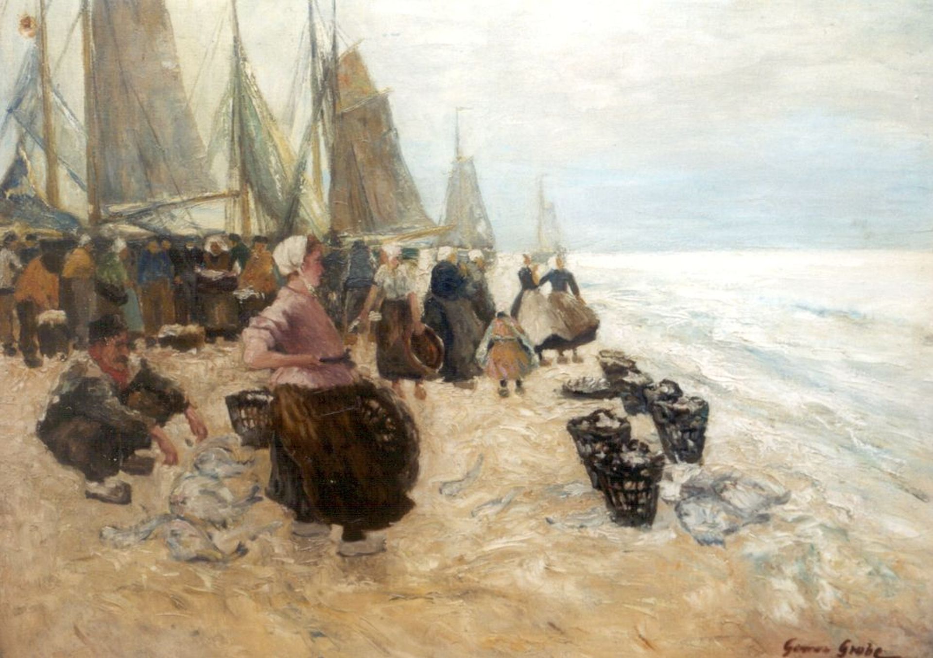 De Duitse schilder German Grobe was leerling van de Akademie in Düsseldorf en zou daarna deel uitmaken van de Düsseldorfse School van landschapschilders. Een van zijn leraren daar was de zeeschilder E.G. Ducker, die veel invloed had op zijn leerling. Vanaf 1887 bracht Grobe iedere zomer door in het Hollandse vissersdorp Katwijk, waar hij dorpsgezichten, strandscènes en het leven van het vissersvolk schilderde. Zijn impressionistische, vaak schetsmatige stijl en eenheid van toon verraden invloed van de schilders van de Haagse School, in het bijzonder van Mauve en Mesdag.