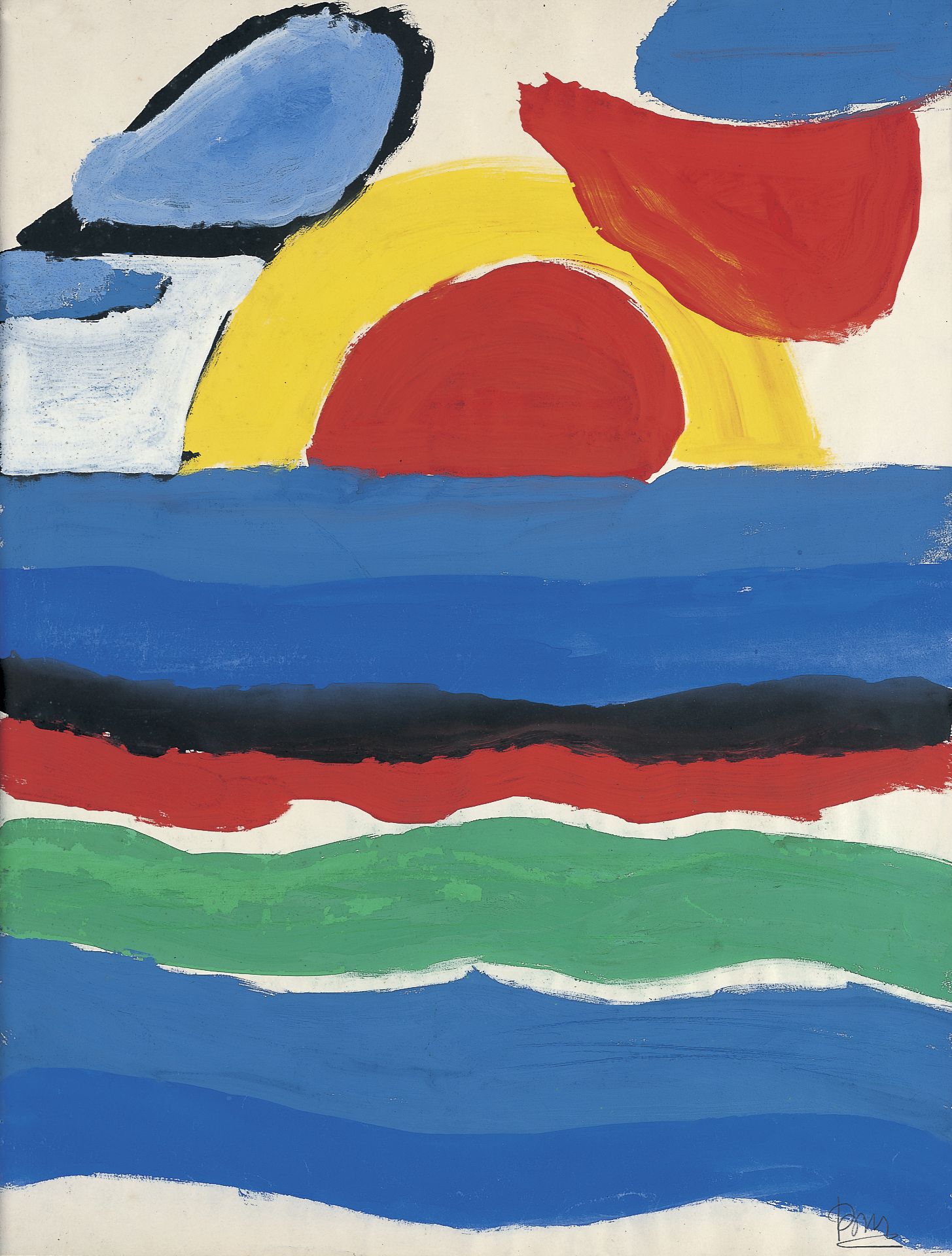 gouache op papier 61,5 x 47,4 cm, gesigneerd rechtsonder en te dateren ca. 1954