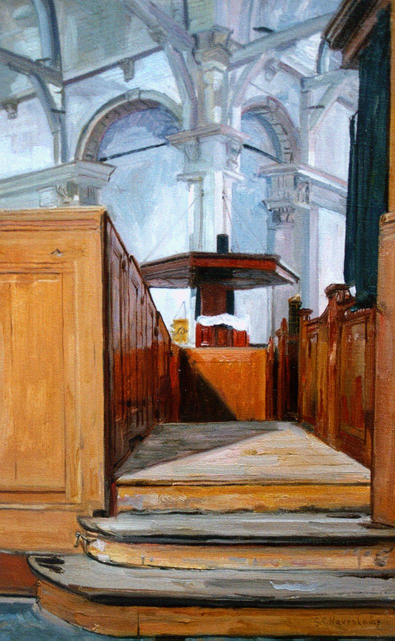Gerrit Haverkamp kunstwerk • schilderij • voorheen te koop De preekstoel van de Oosterkerk te Hoorn