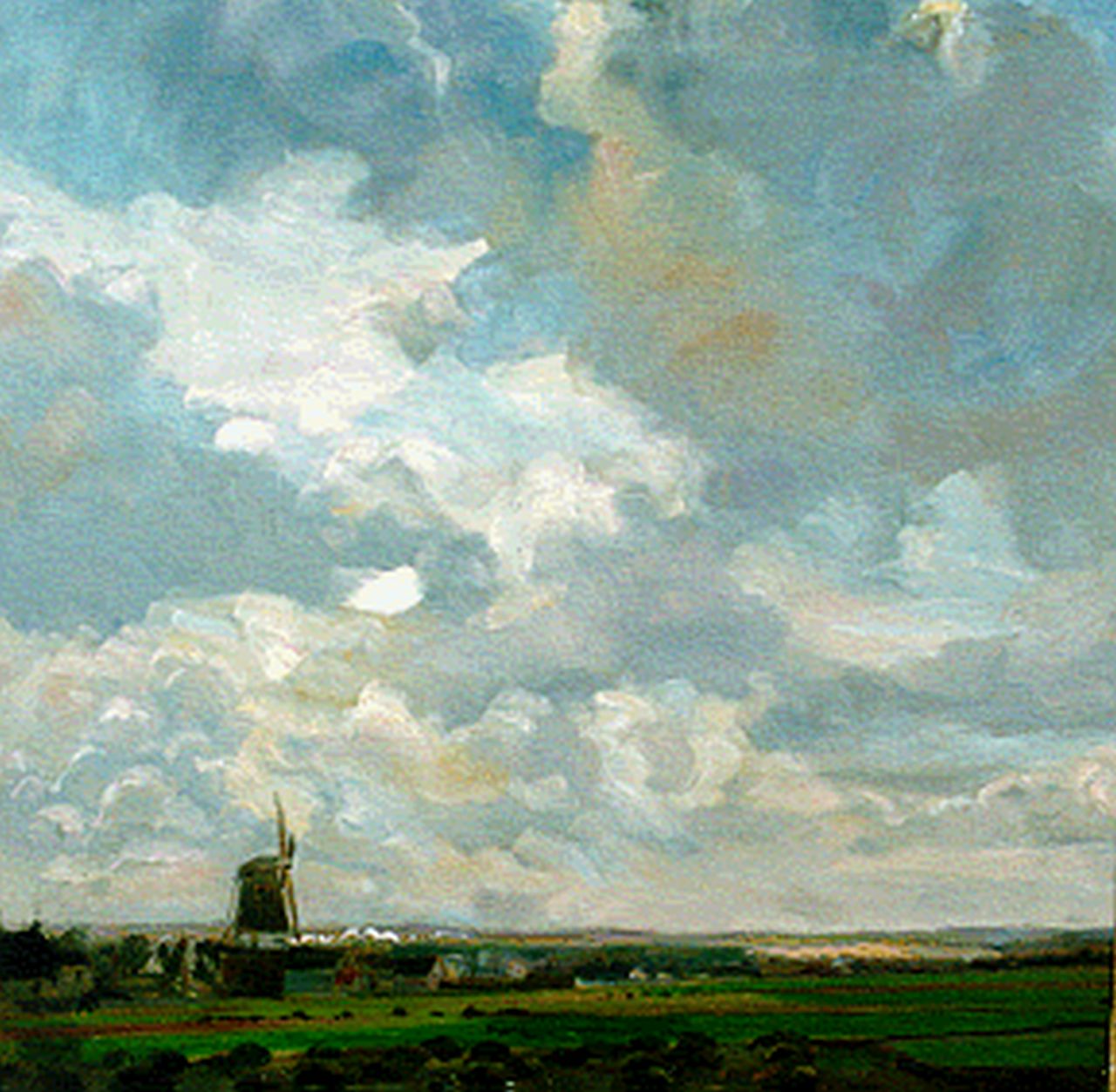 Gerrit Haverkamp kunstwerk • schilderij • voorheen te koop Weids landschap met molen