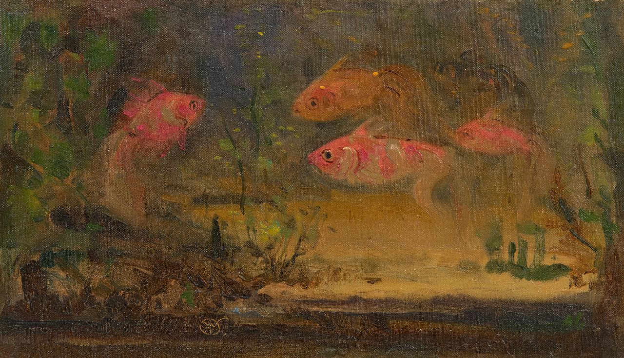 Gerrit Willem Dijsselhof kunstwerk • schilderij • voorheen te koop Sluierstaartvissen