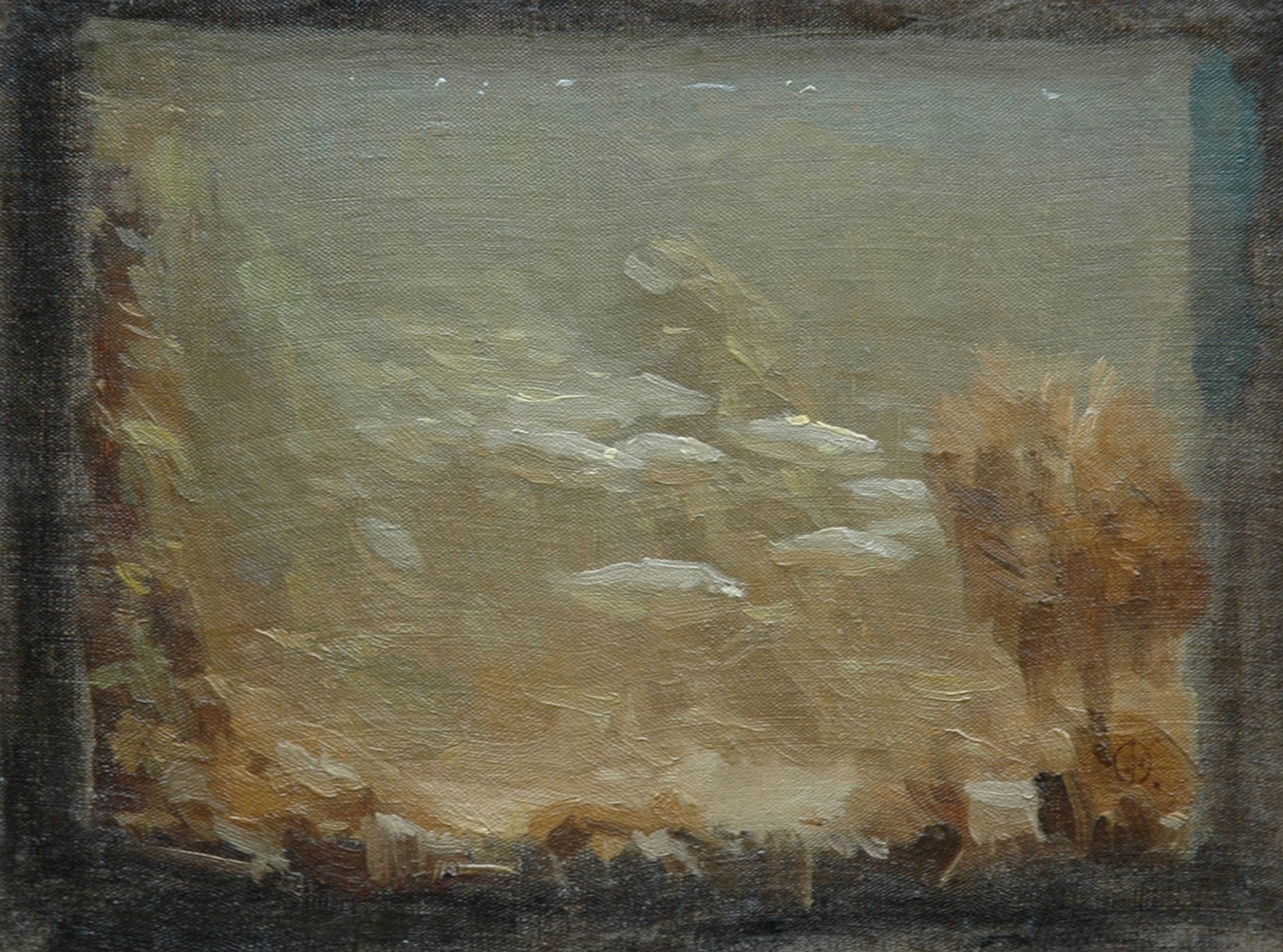 olieverf op doek op paneel 19,3 x 26,1 cm, gesigneerd rechtsonder met monogram