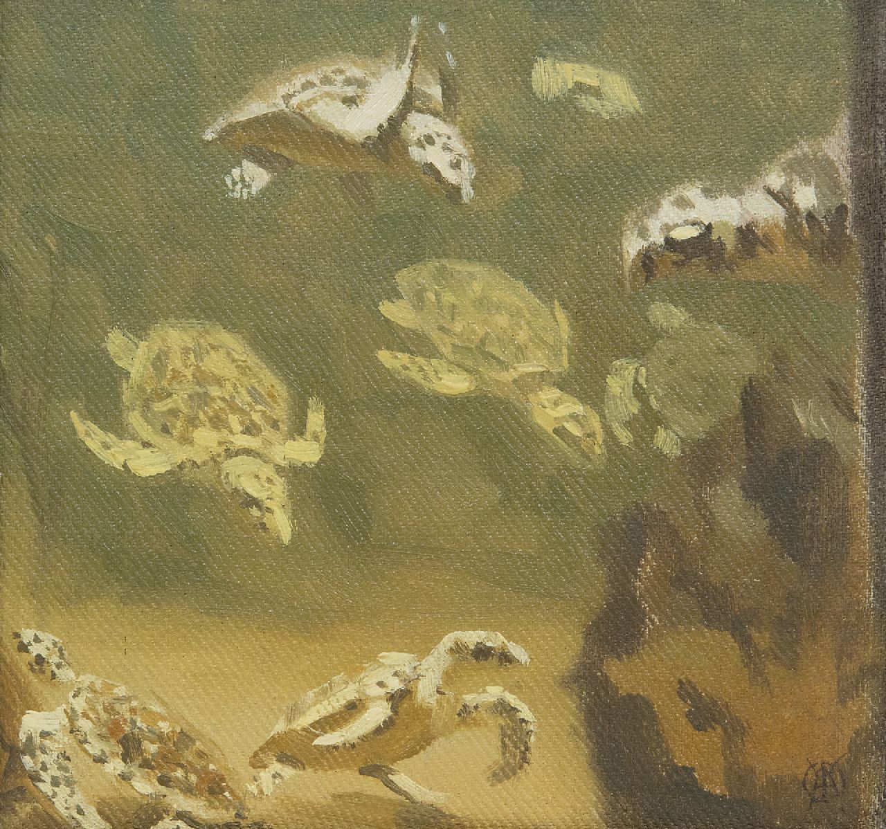 olieverf op paneel 15,0 x 15,0 cm, gesigneerd rechtsonder met monogram