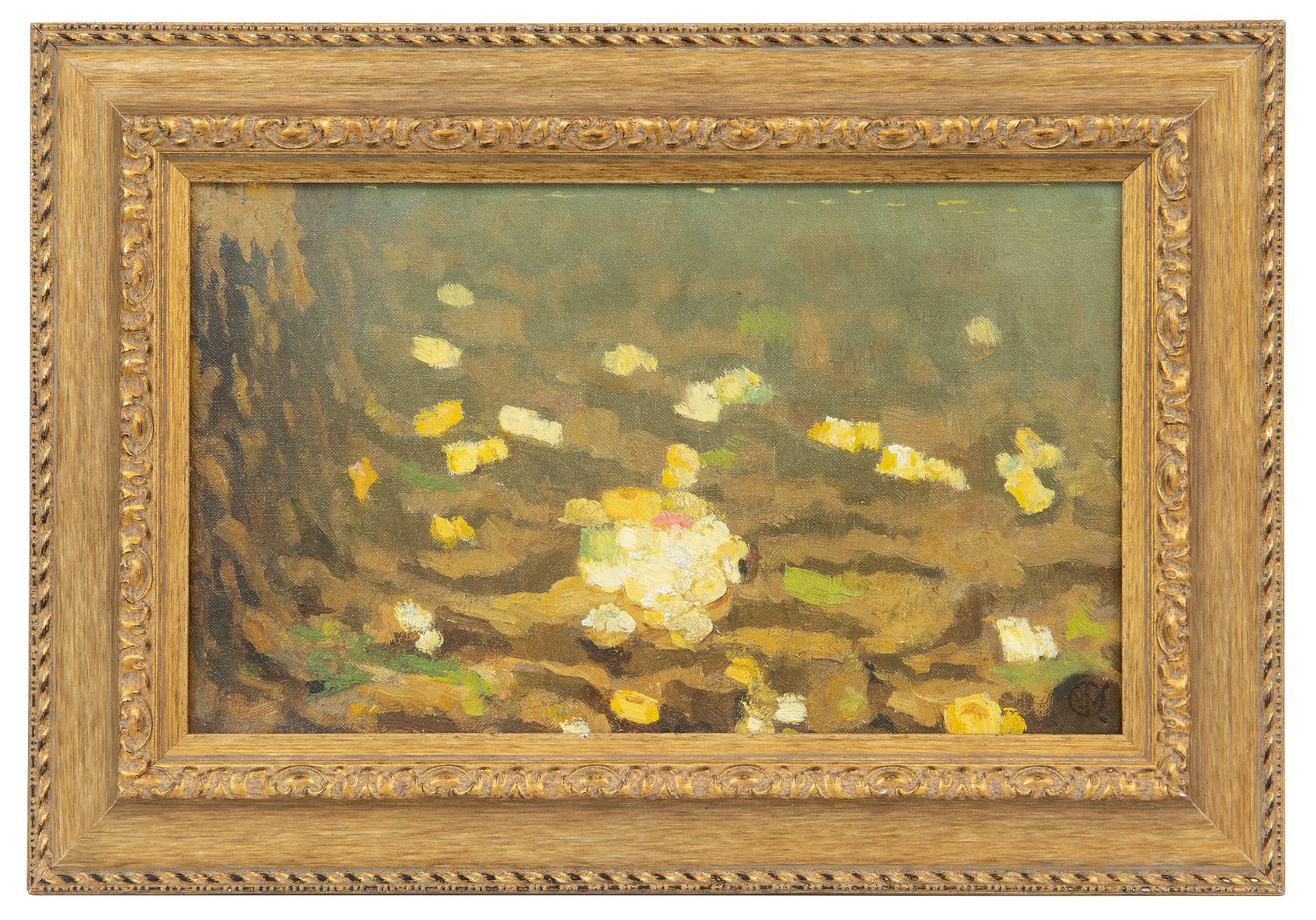 olieverf op doek 15,4 x 24,0 cm, gesigneerd rechtsonder met monogram