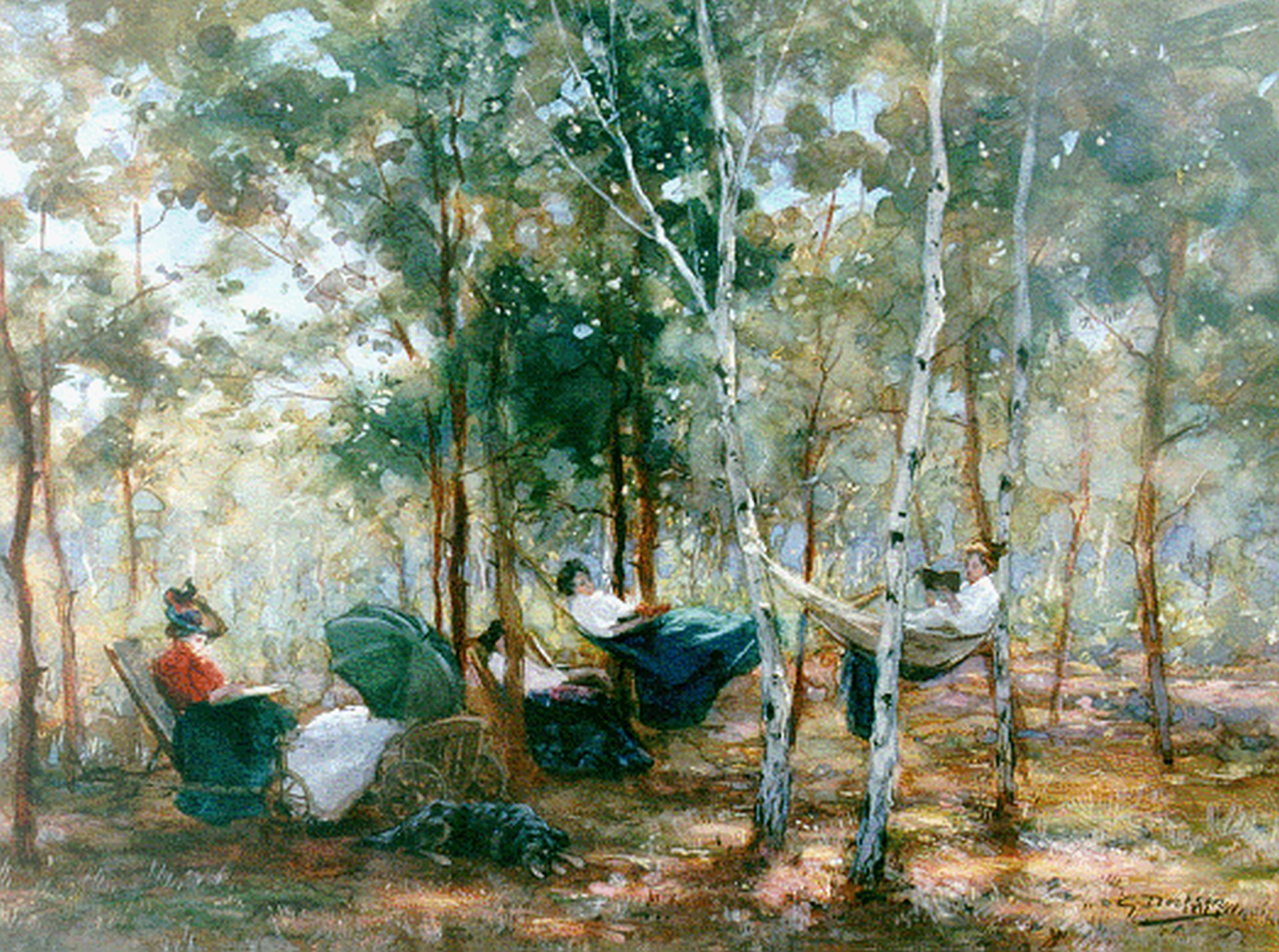 Gijsbertus Derksen kunstwerk • aquarel • tekening • voorheen te koop Een ontspannen zomermiddag