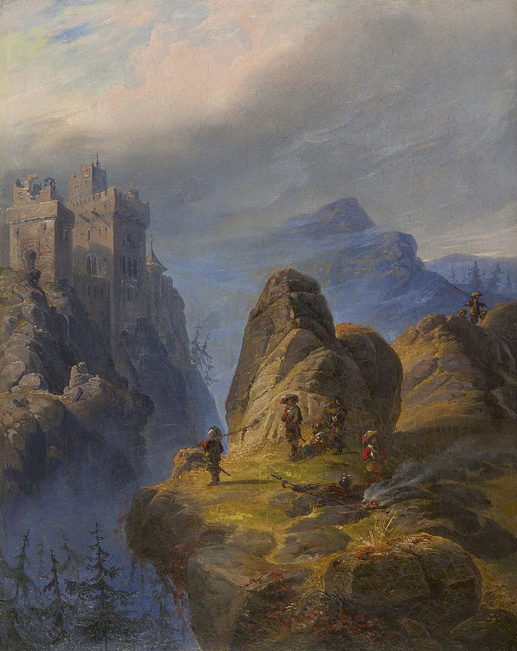 Gillis Haanen kunstwerk • schilderij • voorheen te koop Belegeraars op overhangende rots