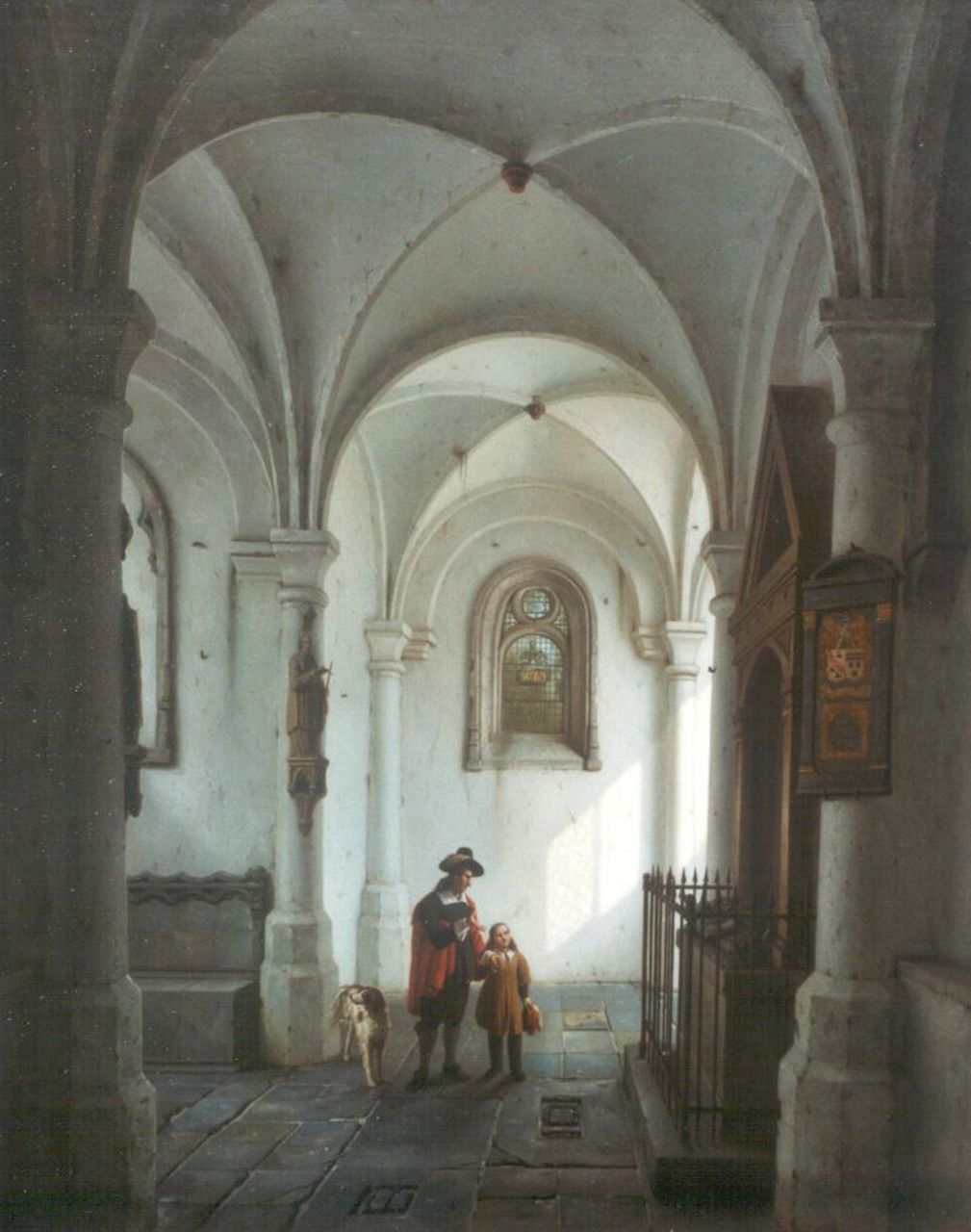 Gillis Haanen kunstwerk • schilderij • voorheen te koop Figuren in een kapel