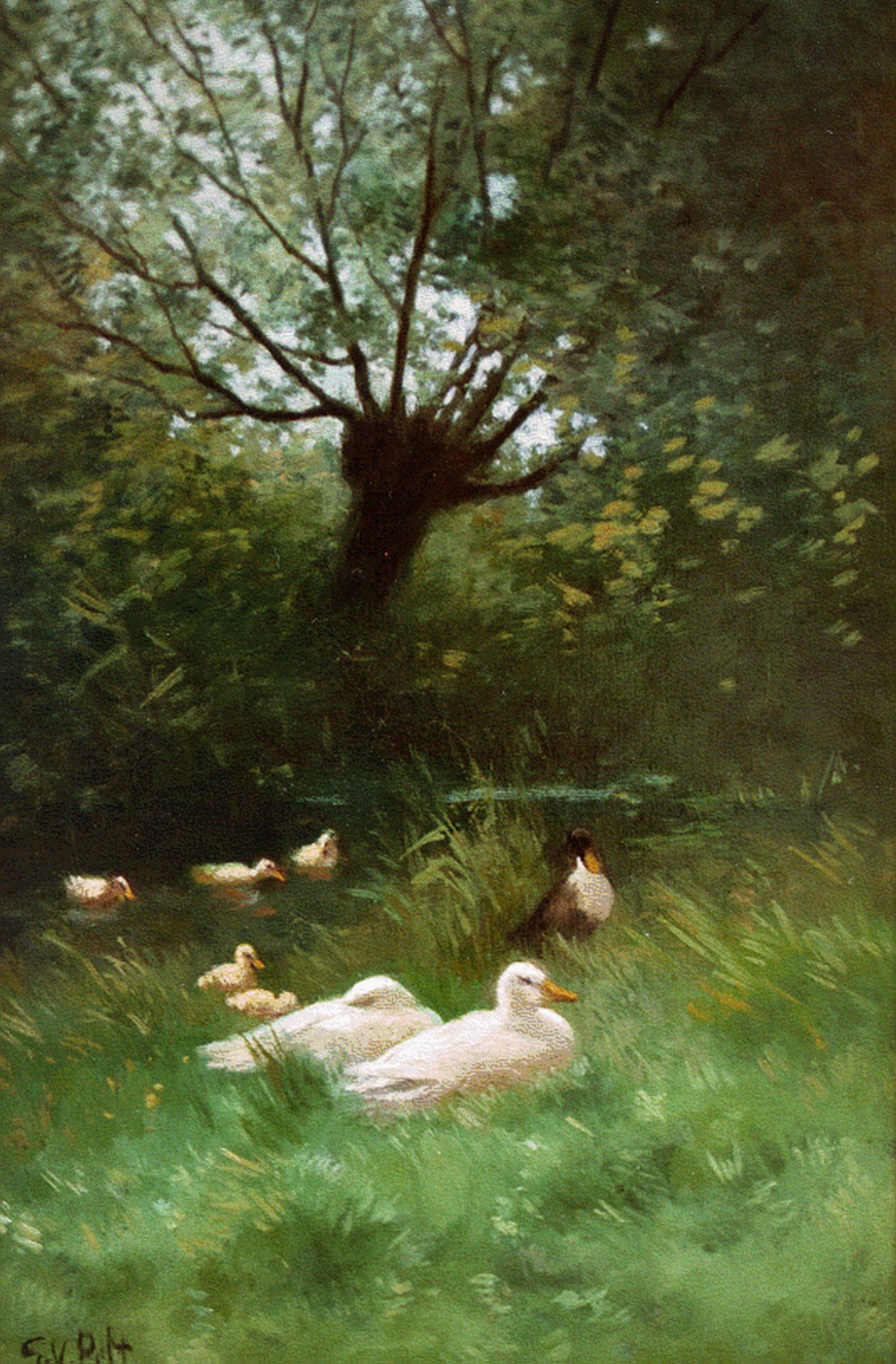 Gottfried van Pelt kunstwerk • schilderij • voorheen te koop Eenden op slootoever