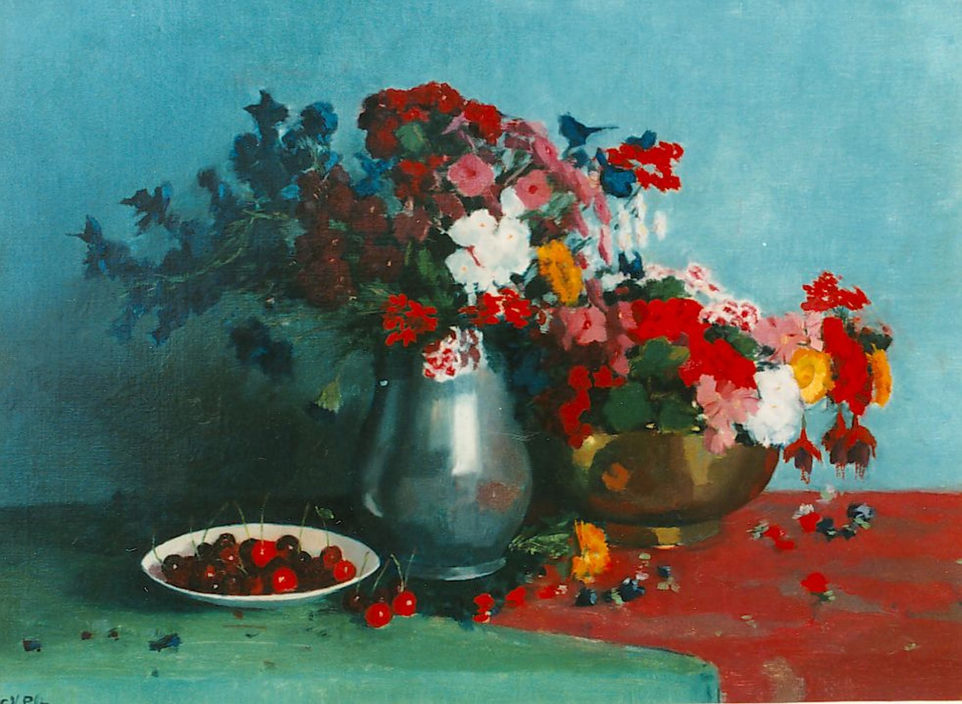 Gottfried van Pelt kunstwerk • schilderij • voorheen te koop Stilleven van bloemen en kersen