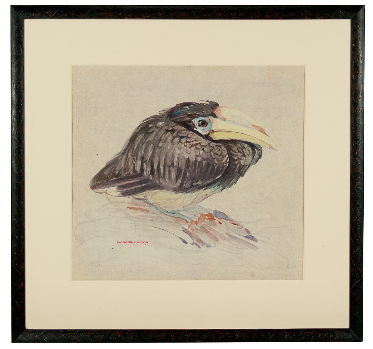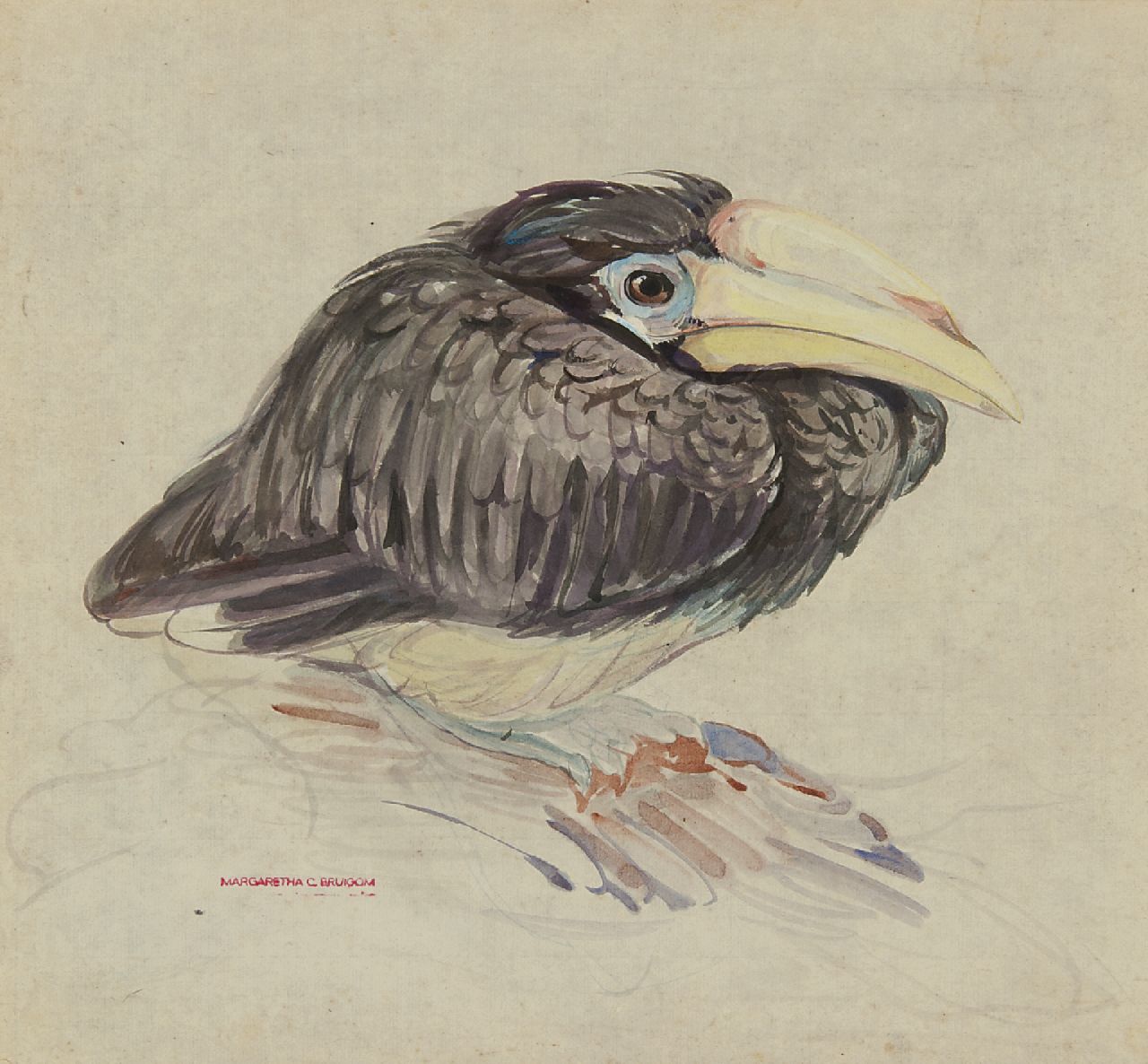 Greta Bruigom kunstwerk • aquarel • tekening • voorheen te koop Jonge neushoornvogel