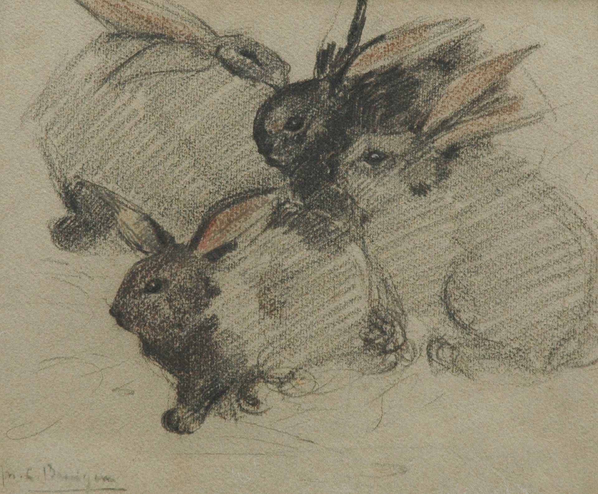 Greta Bruigom kunstwerk • aquarel • tekening • voorheen te koop Vier konijnen
