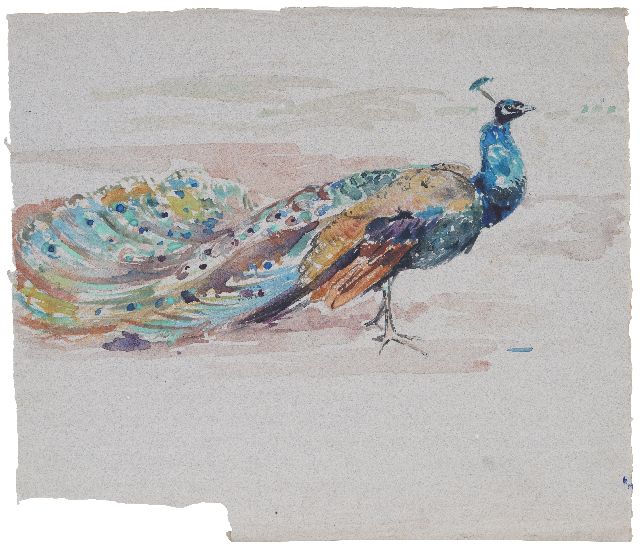 Greta Bruigom | Pauw, aquarel op papier, 32,6 x 37,6 cm