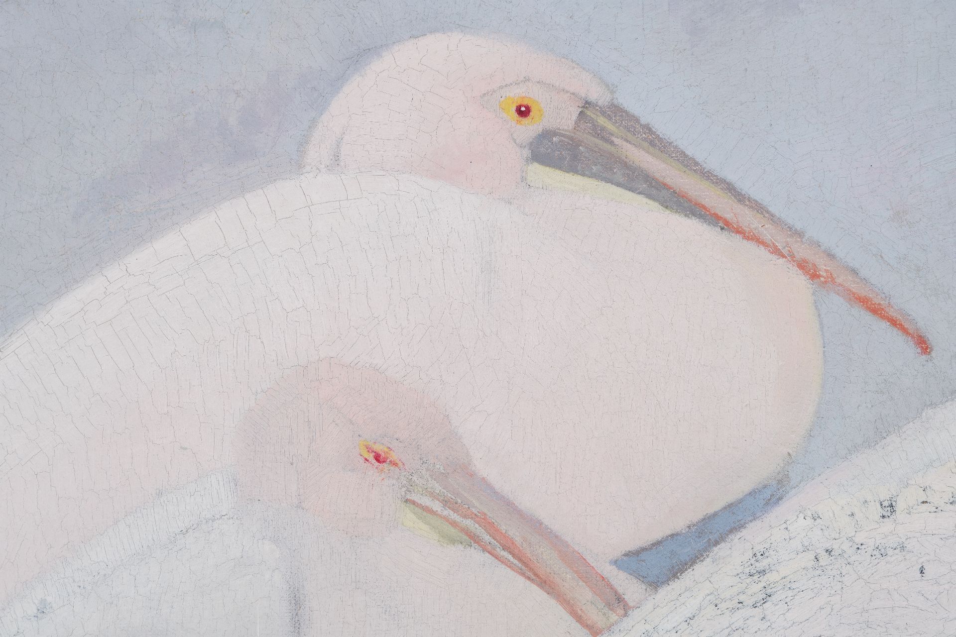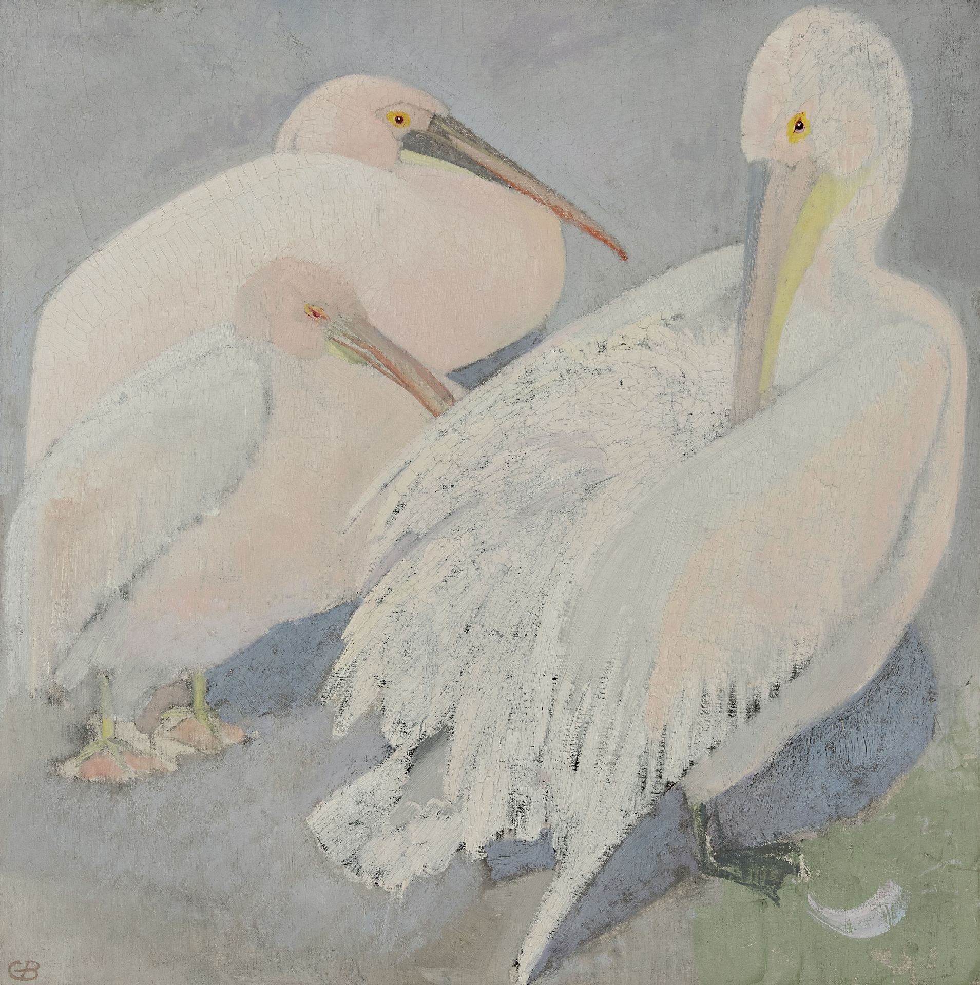 Greta Bruigom kunstwerk • schilderij • te koop Drie pelikanen