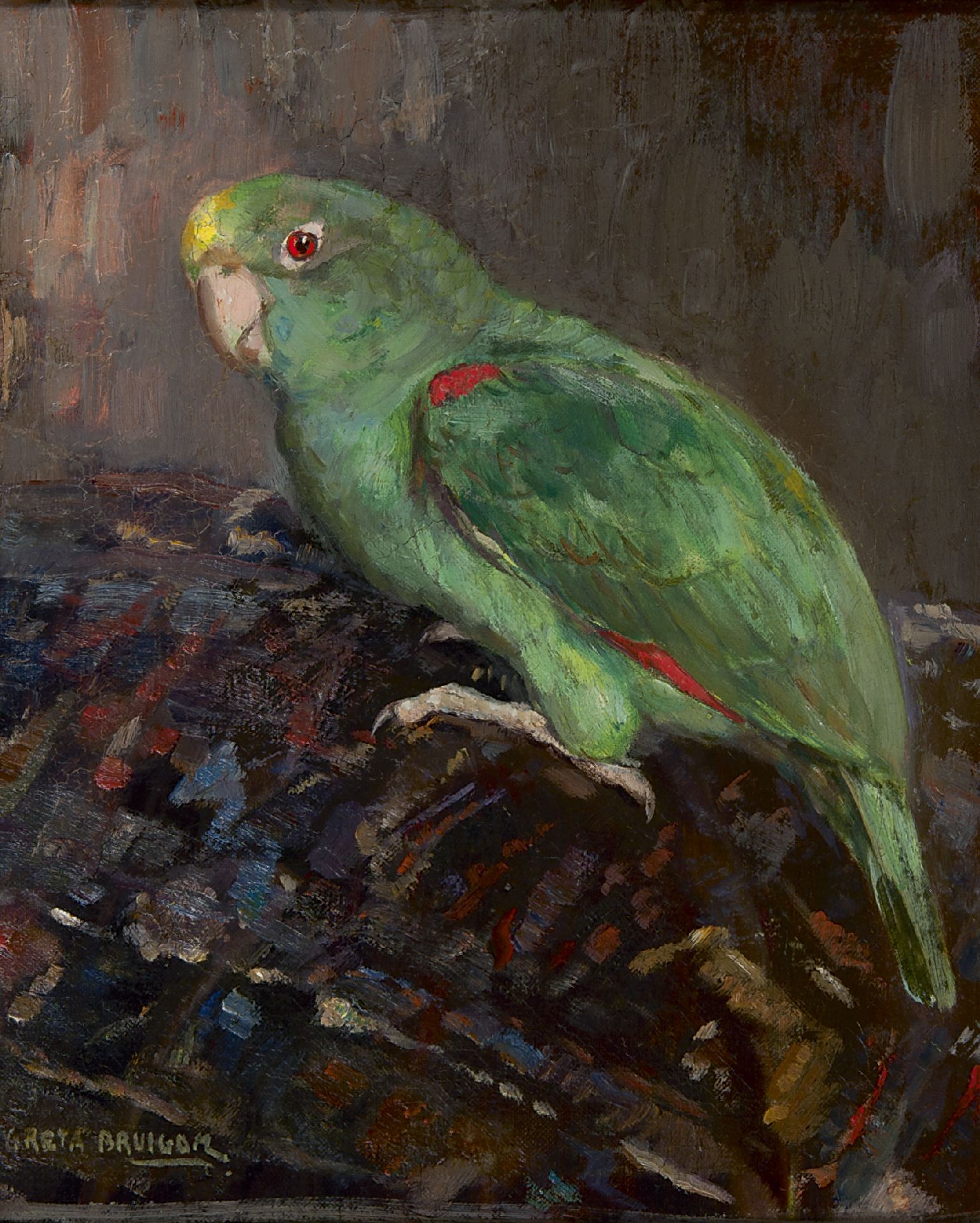 Greta Bruigom kunstwerk • schilderij • voorheen te koop Groene papegaai