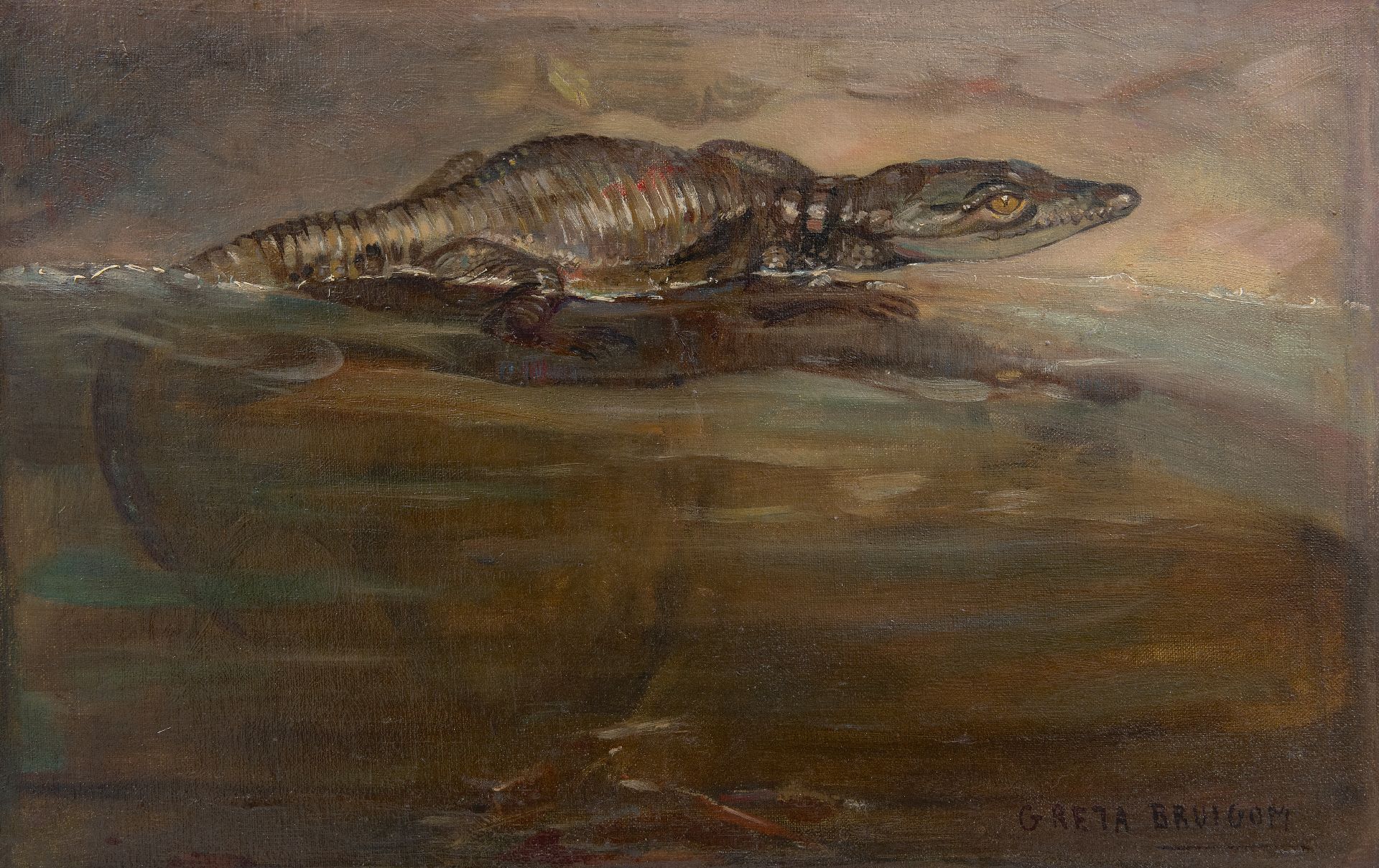 Greta Bruigom kunstwerk • schilderij • voorheen te koop Jonge Nijlkrokodil