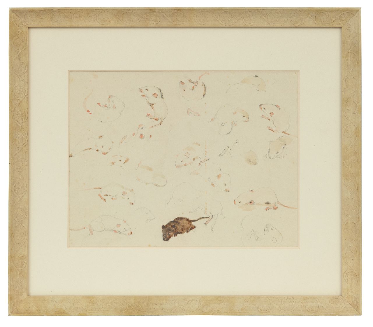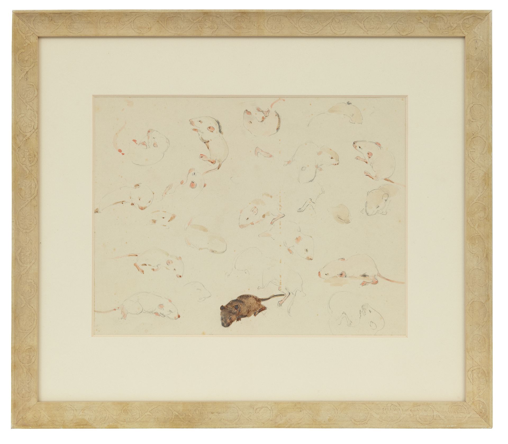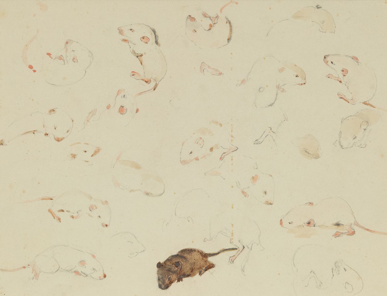 Bruigom M.C.  | Margaretha Cornelia 'Greta' Bruigom | Aquarellen en tekeningen te koop aangeboden | Studie van muizen, 10 dagen oud, potlood en aquarel op papier 19,9 x 24,1 cm, gesigneerd rechtsonder