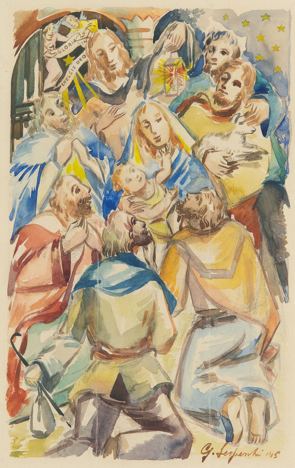 Guillaume Serpenti kunstwerk • aquarel • tekening • voorheen te koop Gloria in excelsis Deo