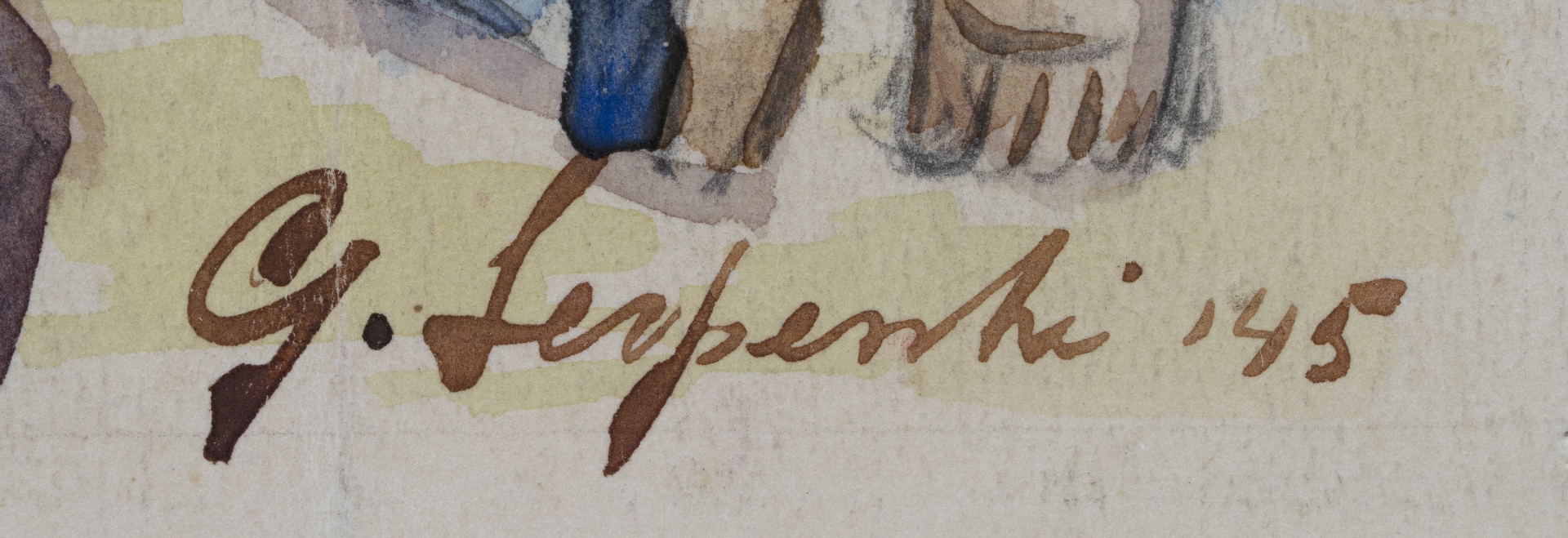 aquarel op papier 28,0 x 17,8 cm, gesigneerd rechtsonder en gedateerd '45