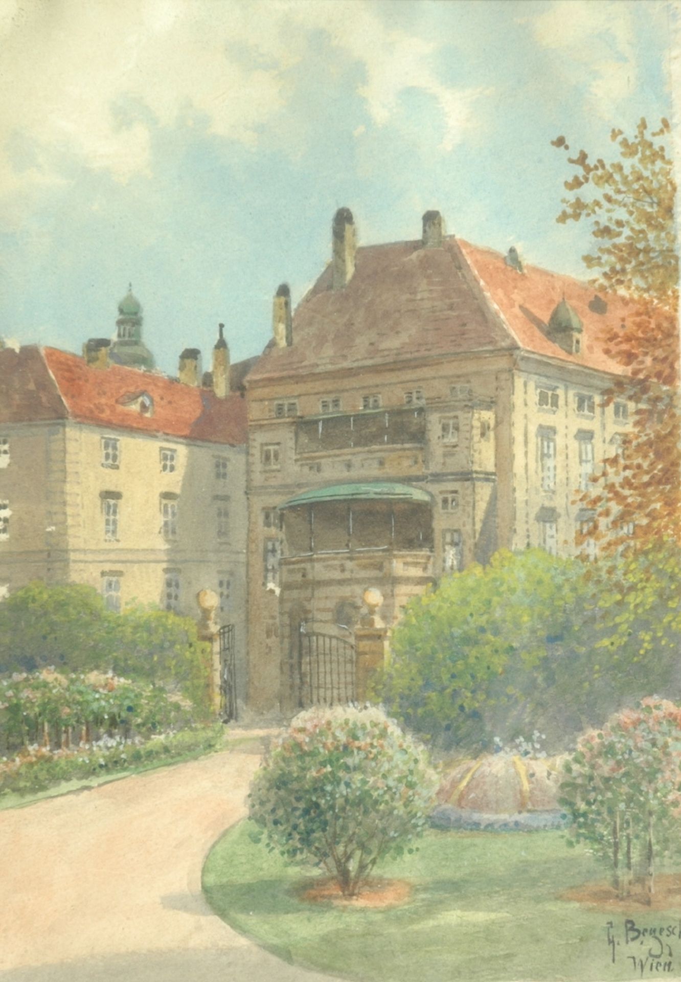 Gustav Benesch kunstwerk • aquarel • tekening • voorheen te koop Stadsgezicht Wenen