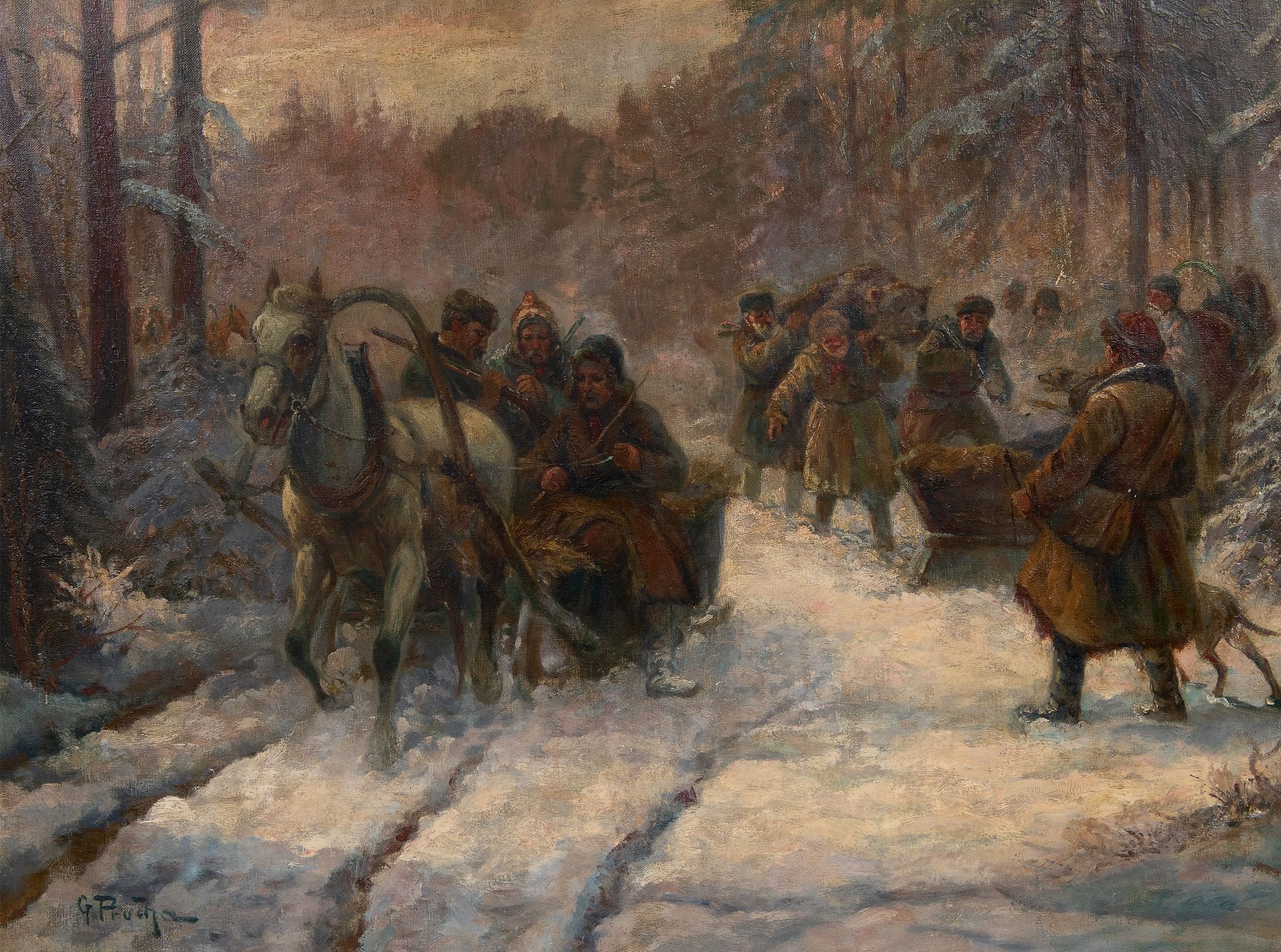 Gustav Prucha kunstwerk • schilderij • te koop Terugkeer van de berenjacht