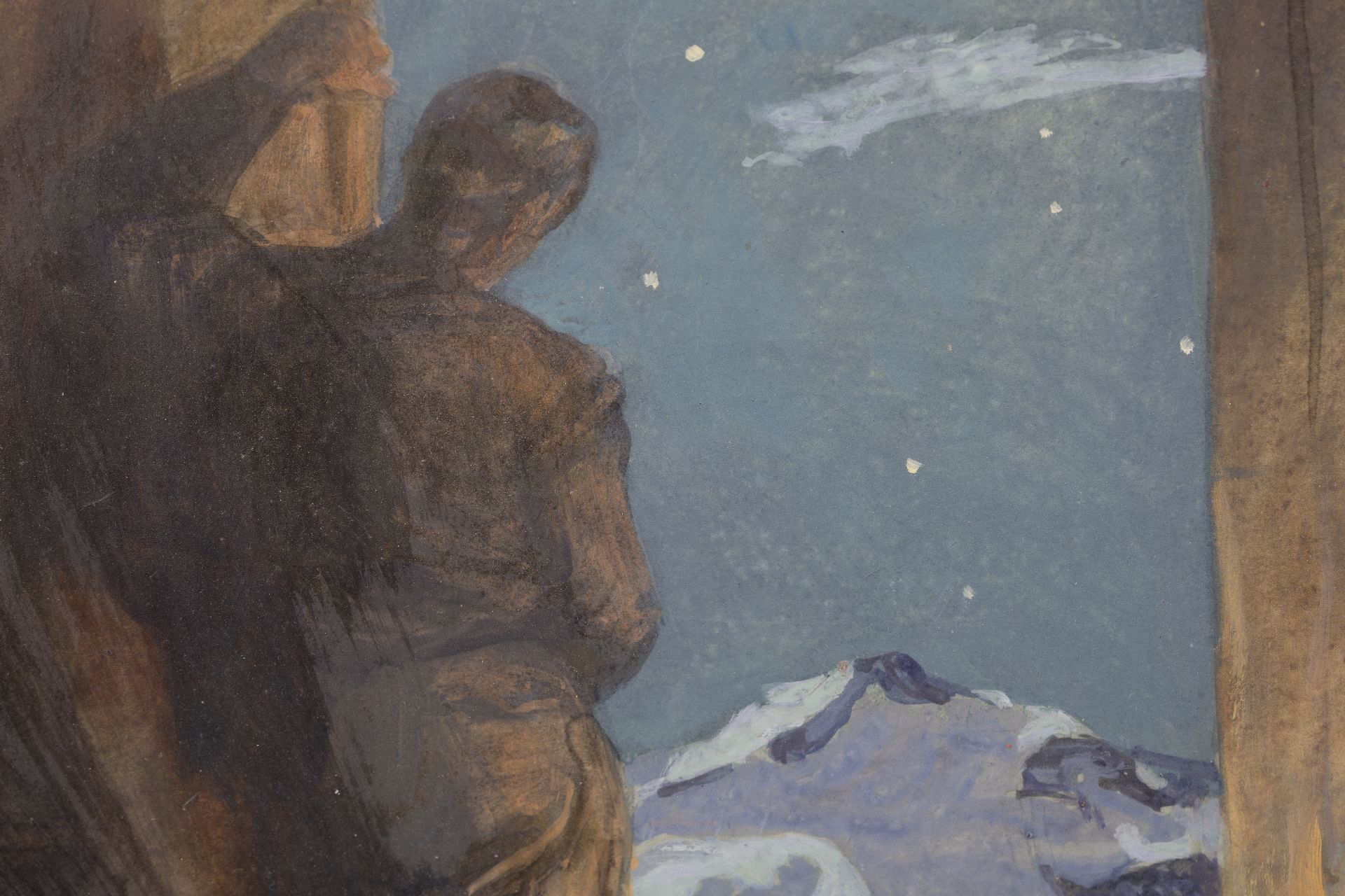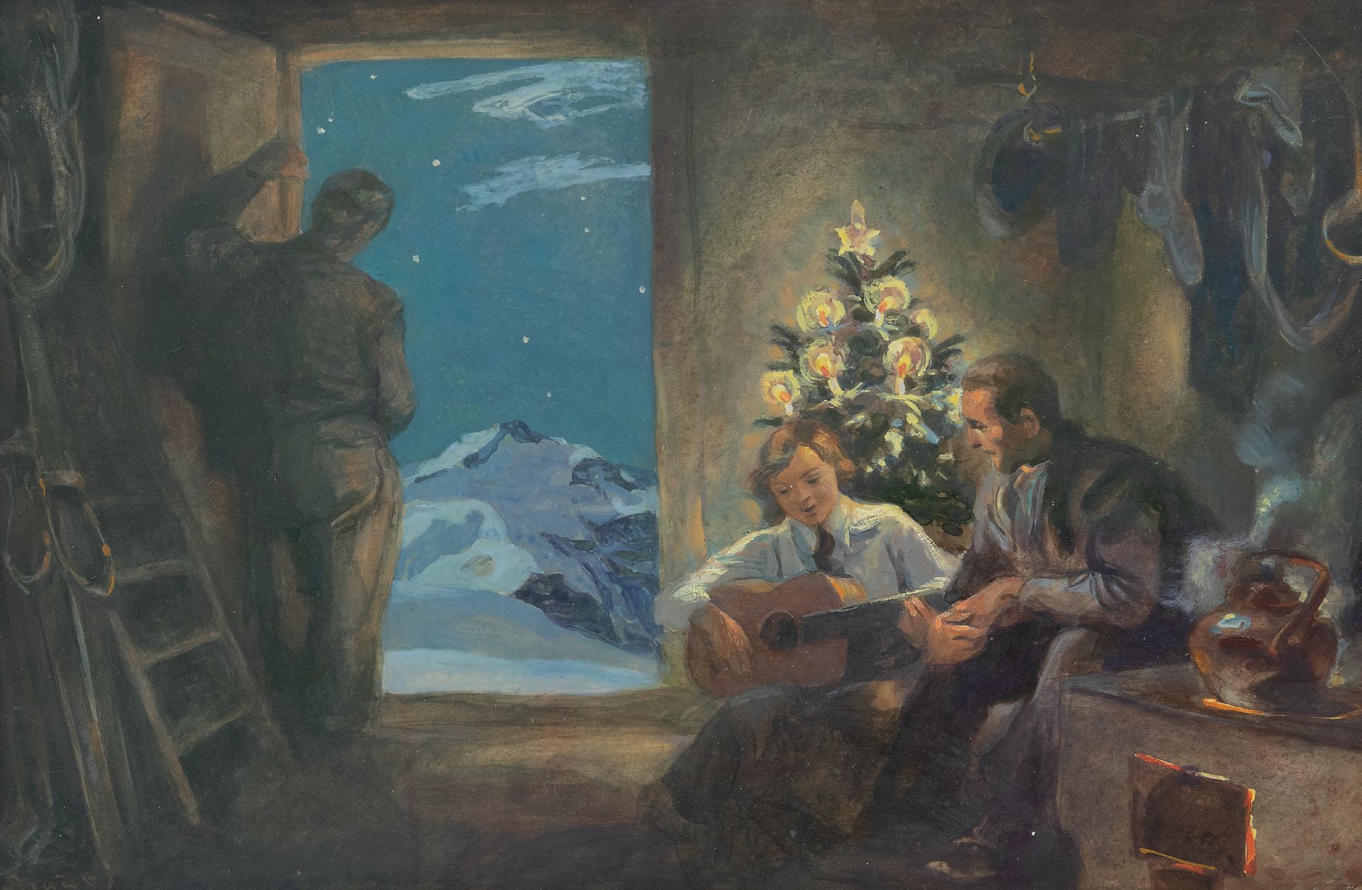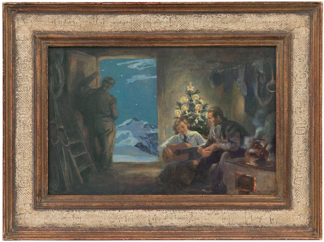 Gustav Traub kunstwerk • schilderij • voorheen te koop Kerstavond hoog in de Alpen