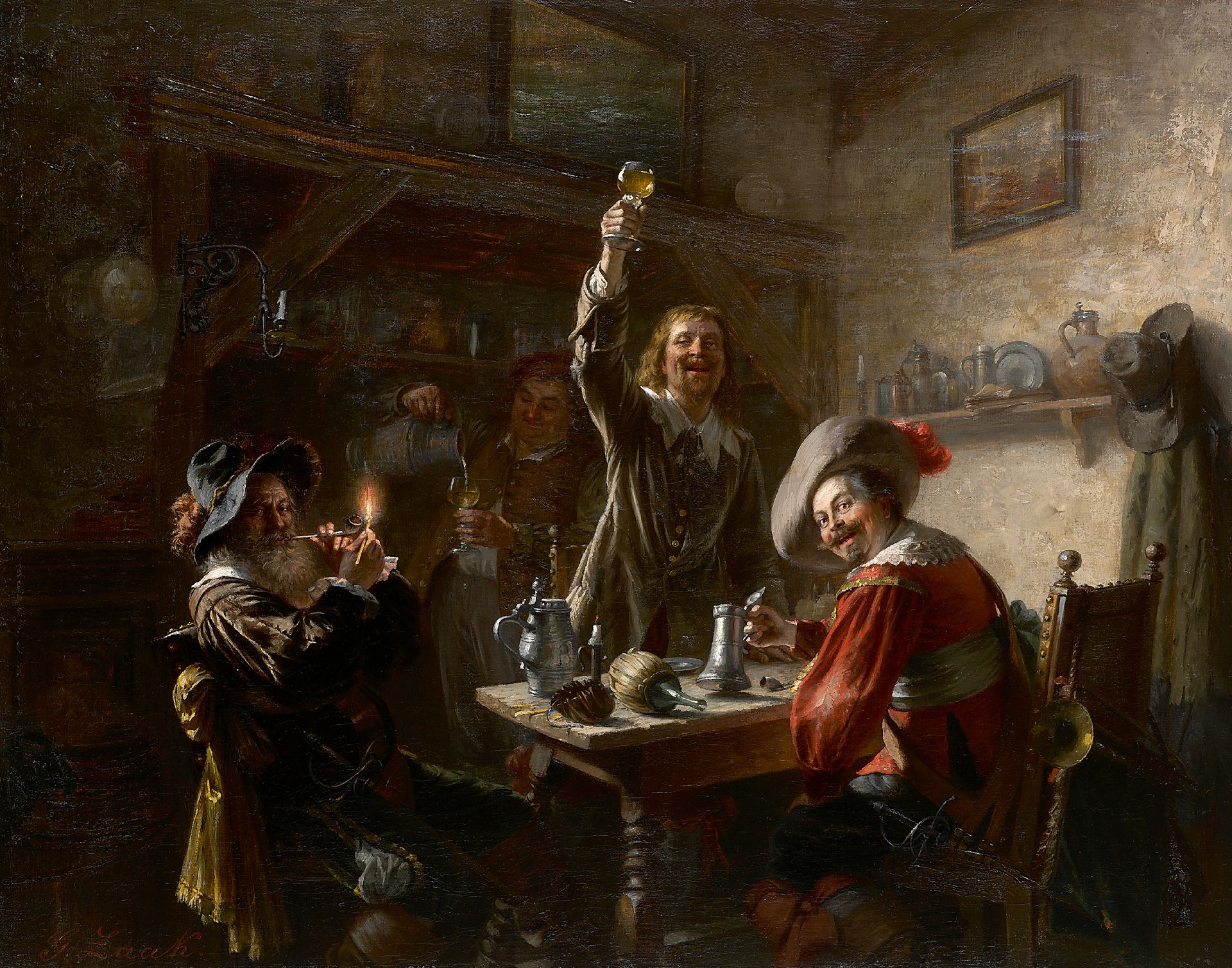 Gustav Zaak kunstwerk • schilderij • voorheen te koop De vrolijke drinkers