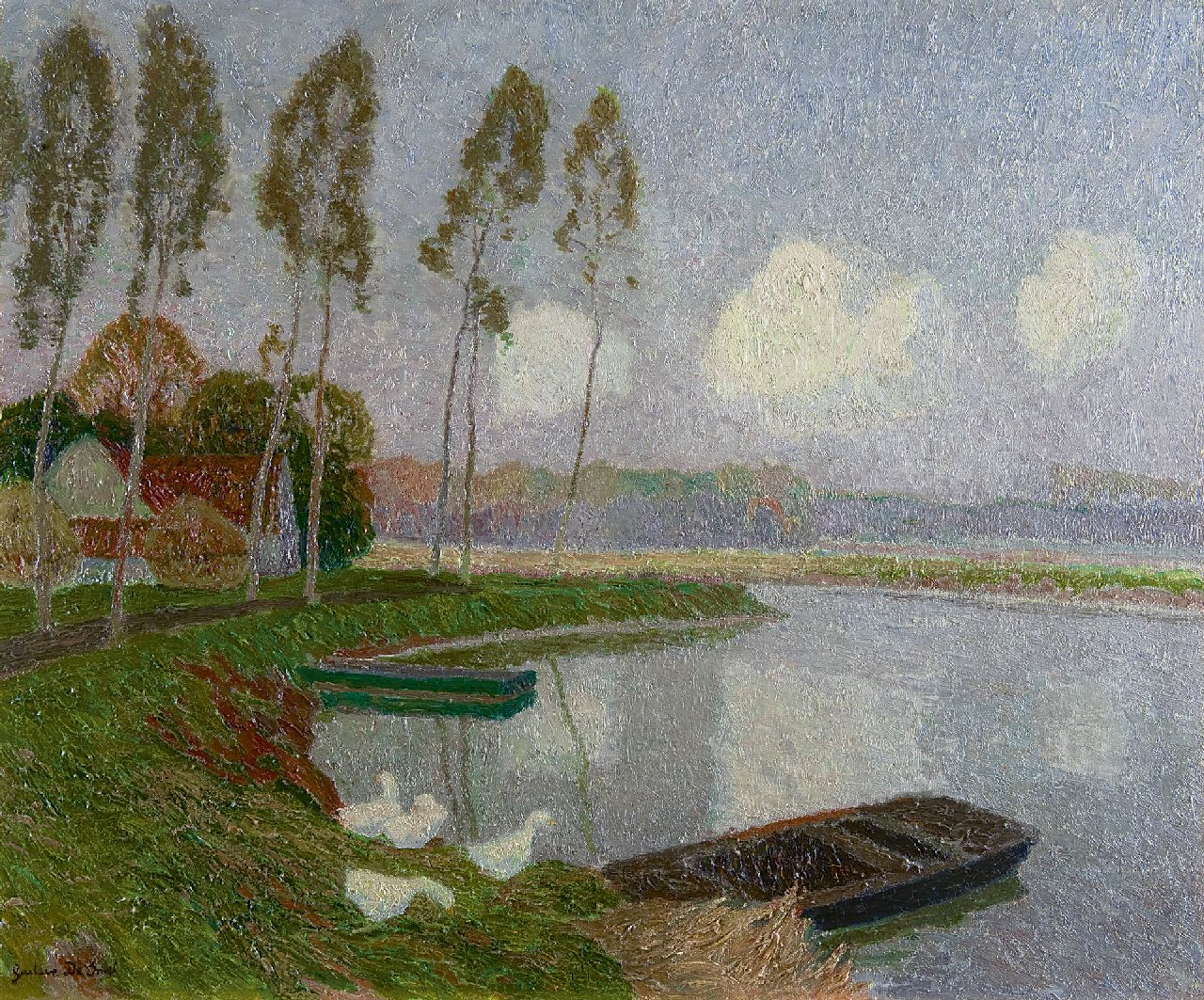 Gustave de Smet kunstwerk • schilderij • voorheen te koop Leielandschap, bij Sint-Martens-Latem